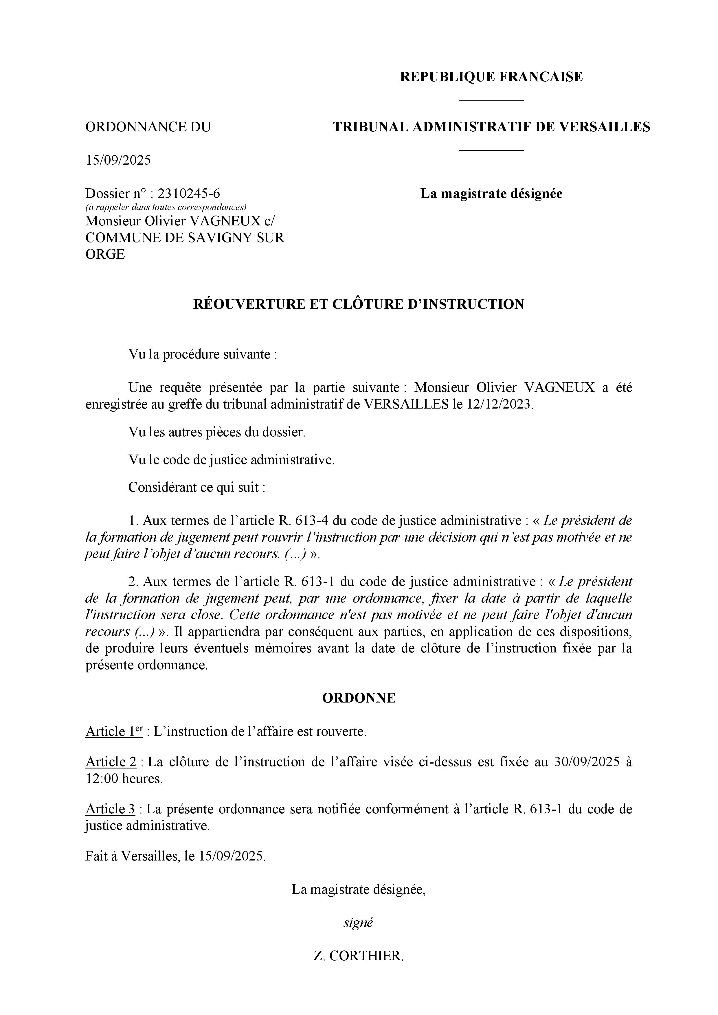 Mort de rire. Le Tribunal administratif vient d’accepter de rouvrir une instruction pour me permettre de demander 2 000 euros d’indemnisation à la Commune de Savigny-sur-Orge !!!