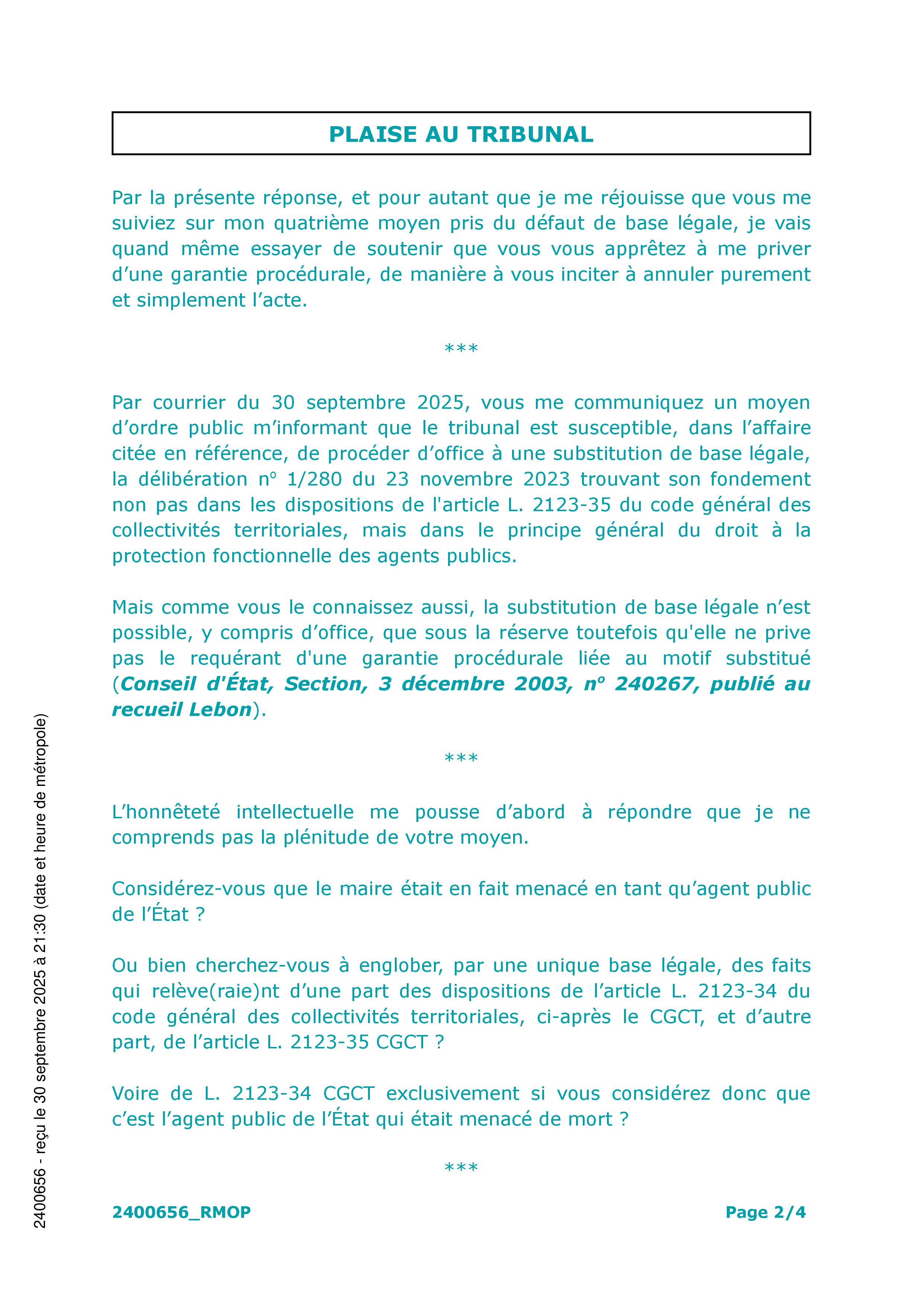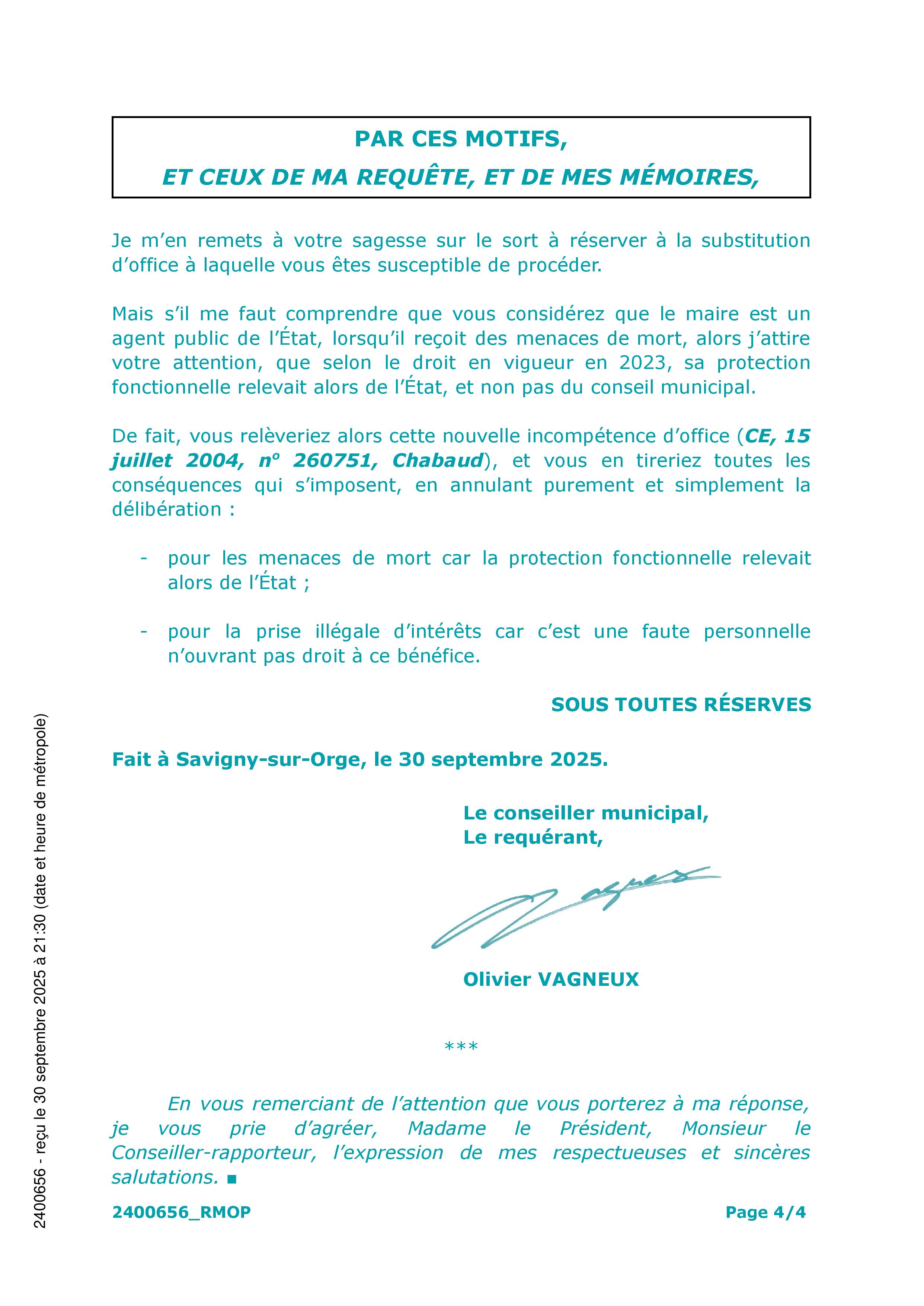 Sinon qu’en fait, et quelle que soit la configuration, le service juridique de la Commune de Savigny-sur-Orge est en tort ; et que l’on m’informe que l’on va venir sauver leurs fesses, mais que je peux quand même présenter des observations pour la forme qui ne changeront rien.