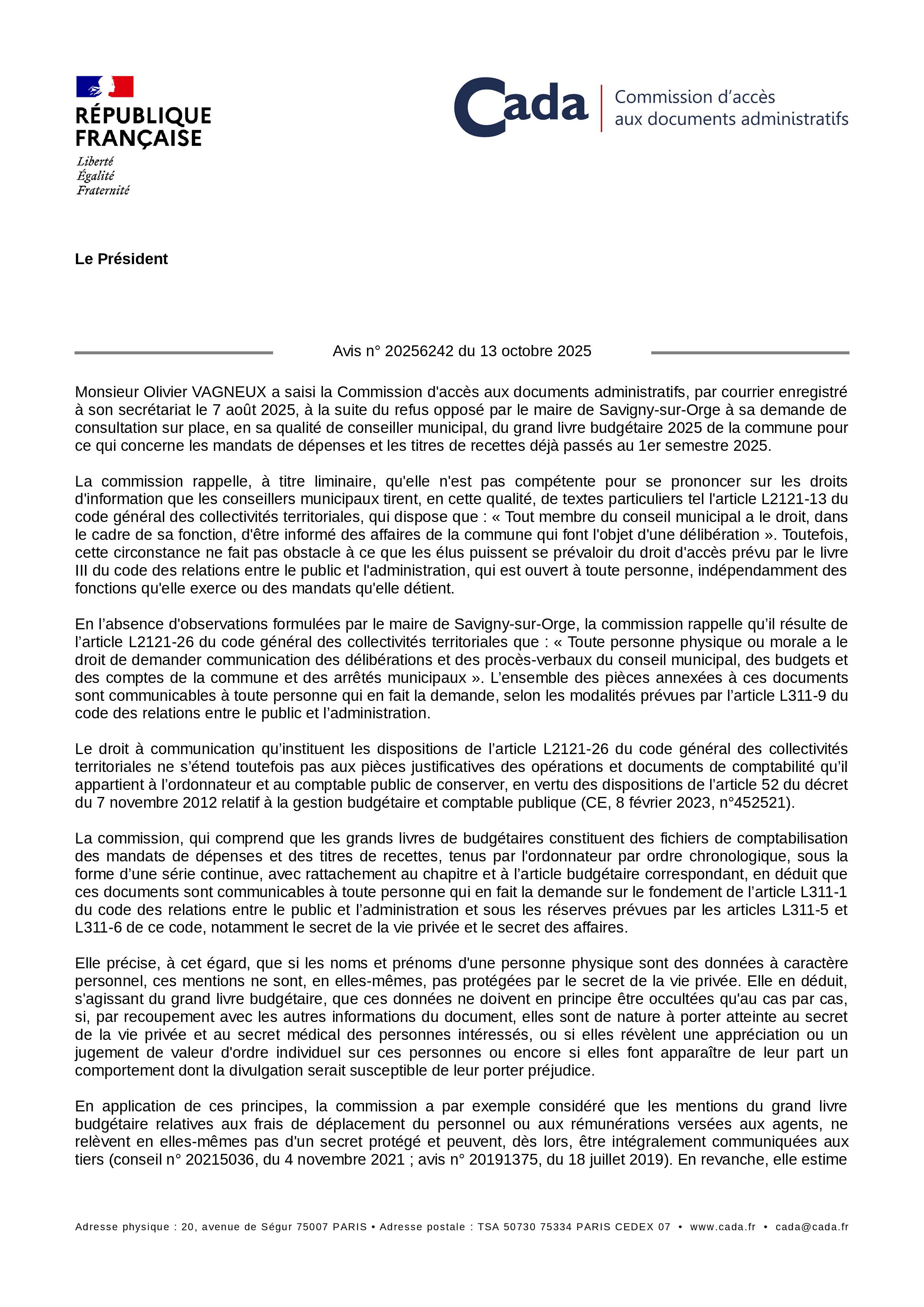 et elle rend un avis favorable et dit qu’on peut consulter les grands livres budgétaires en cours d’exercice !