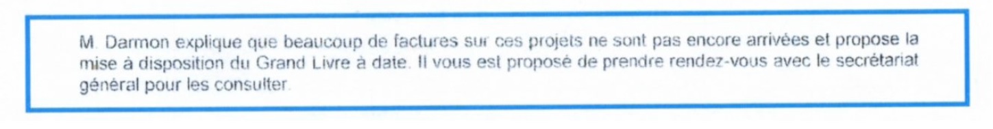 En commission municipale, l’adjoint DARMON qui me dit donc, de guerre lasse, OK pour consulter les grands livres budgétaires à date,