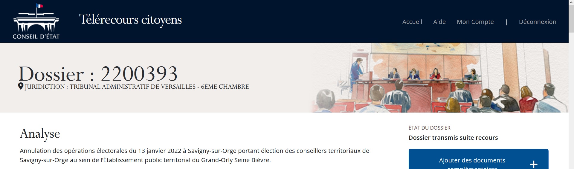 À noter pour comprendre la suite ; dossier 2200393 = élection à l’Établissement public territorial = la quatrième élection contestée.