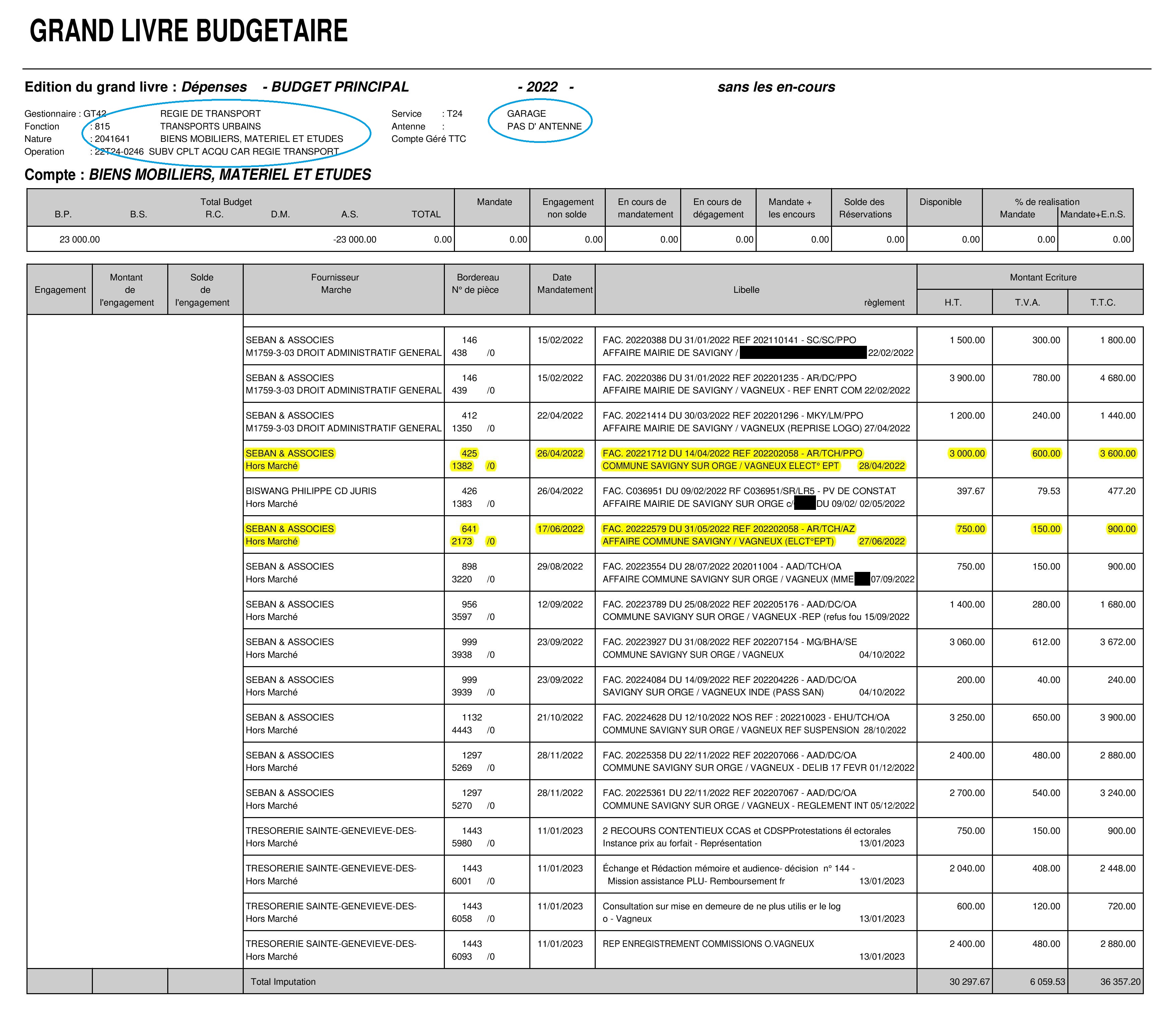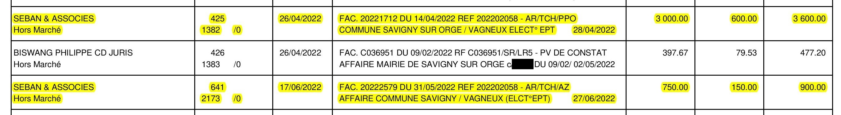 Ici, les mandats de paiement des factures d’avocat par la Commune !