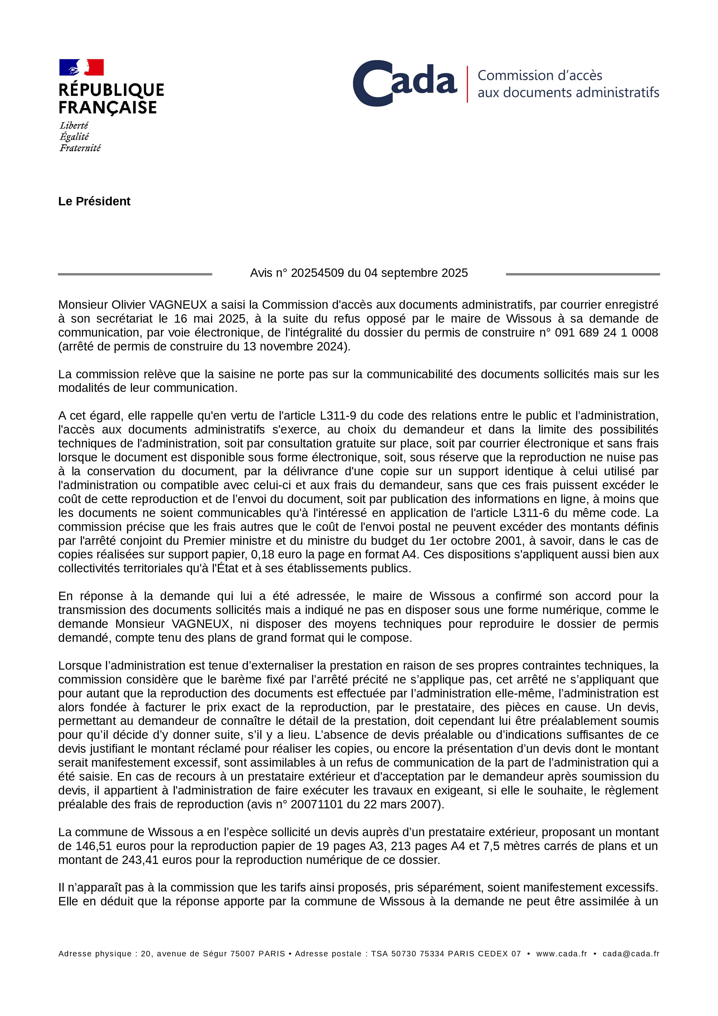 Ils m’ont donc proposé, pour un dossier d’urbanisme, que le Tribunal administratif réclamait, un devis de 150 euros pour la copie et de 240 euros pour la numérisation par une société privée.