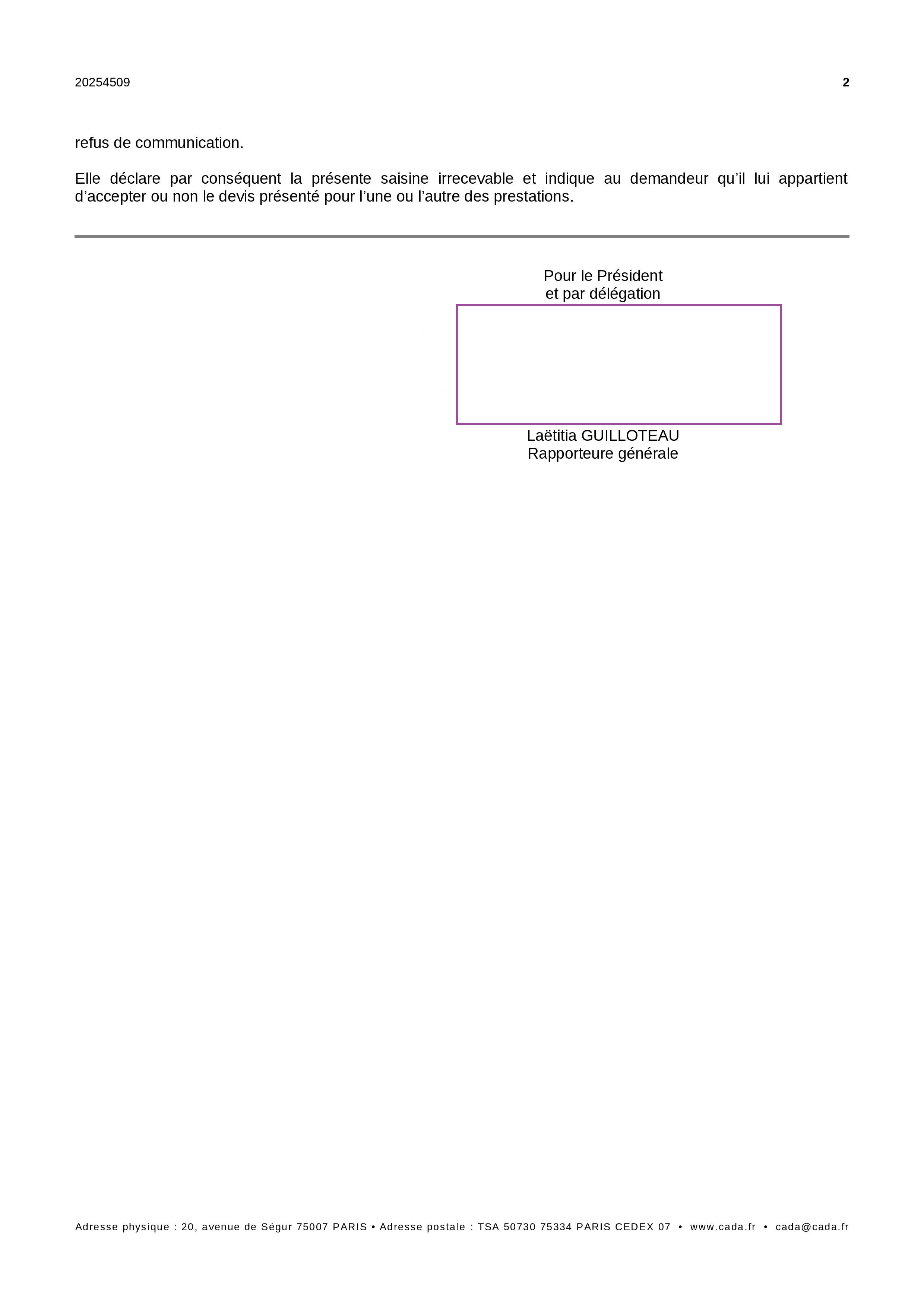 En revanche, si elle apprécie que le devis est conforme, elle conclut qu’elle n’est pas valablement saisie, puisqu’il n’y a pas refus de communication, et déclare donc irrecevable la demande.