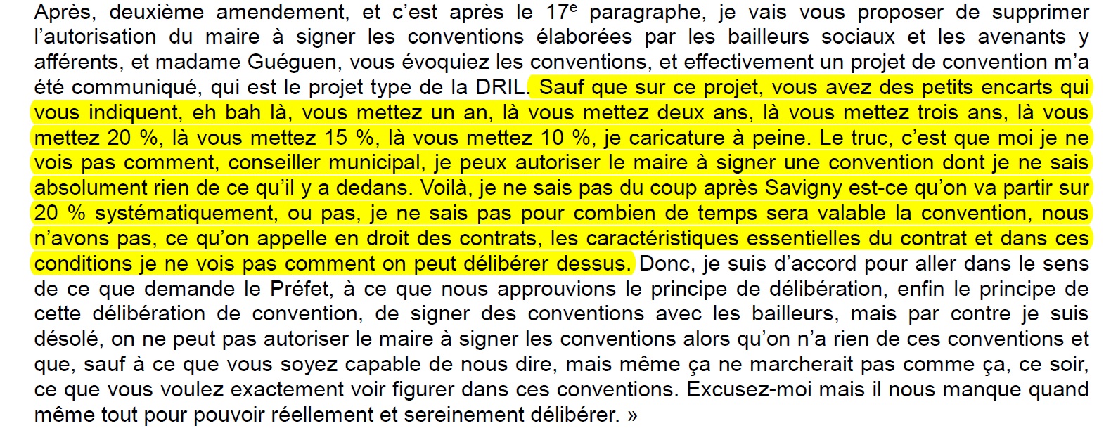 Aucun projet de convention-type n’était d’ailleurs joint au dossier de séance, malgré ma demande…