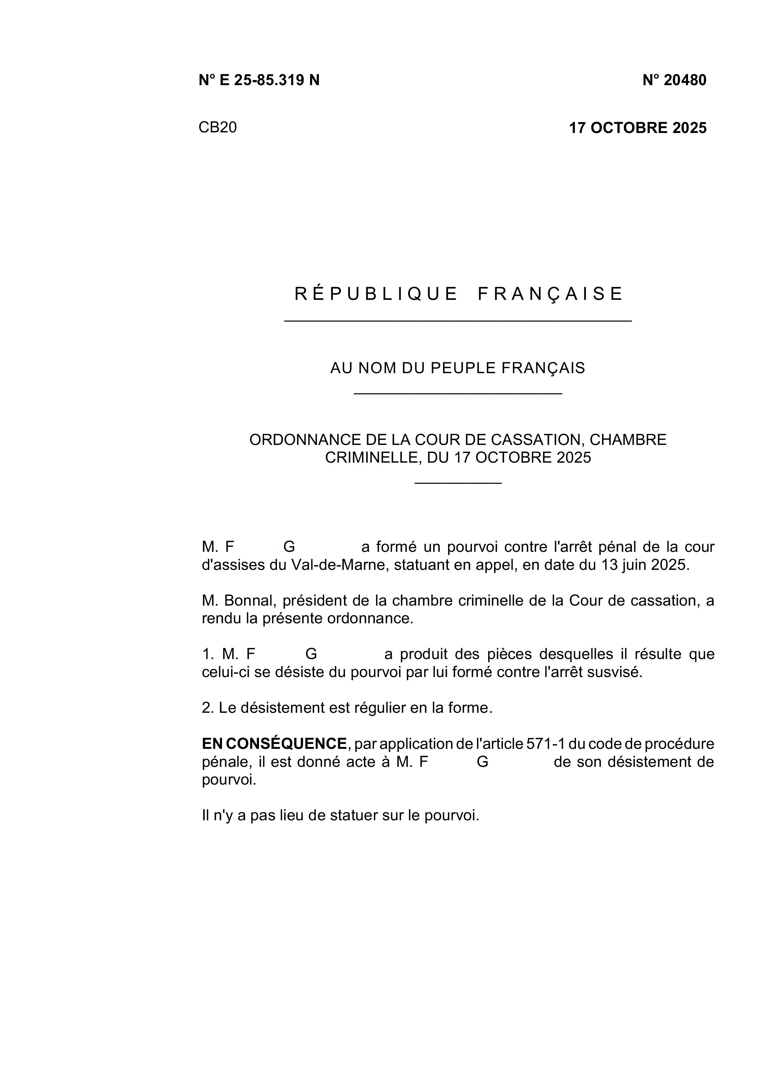 En réalité, il m’avait annoncé dès le 6 octobre 2025 que le meurtrier s’était désisté de son pourvoi en cassation.