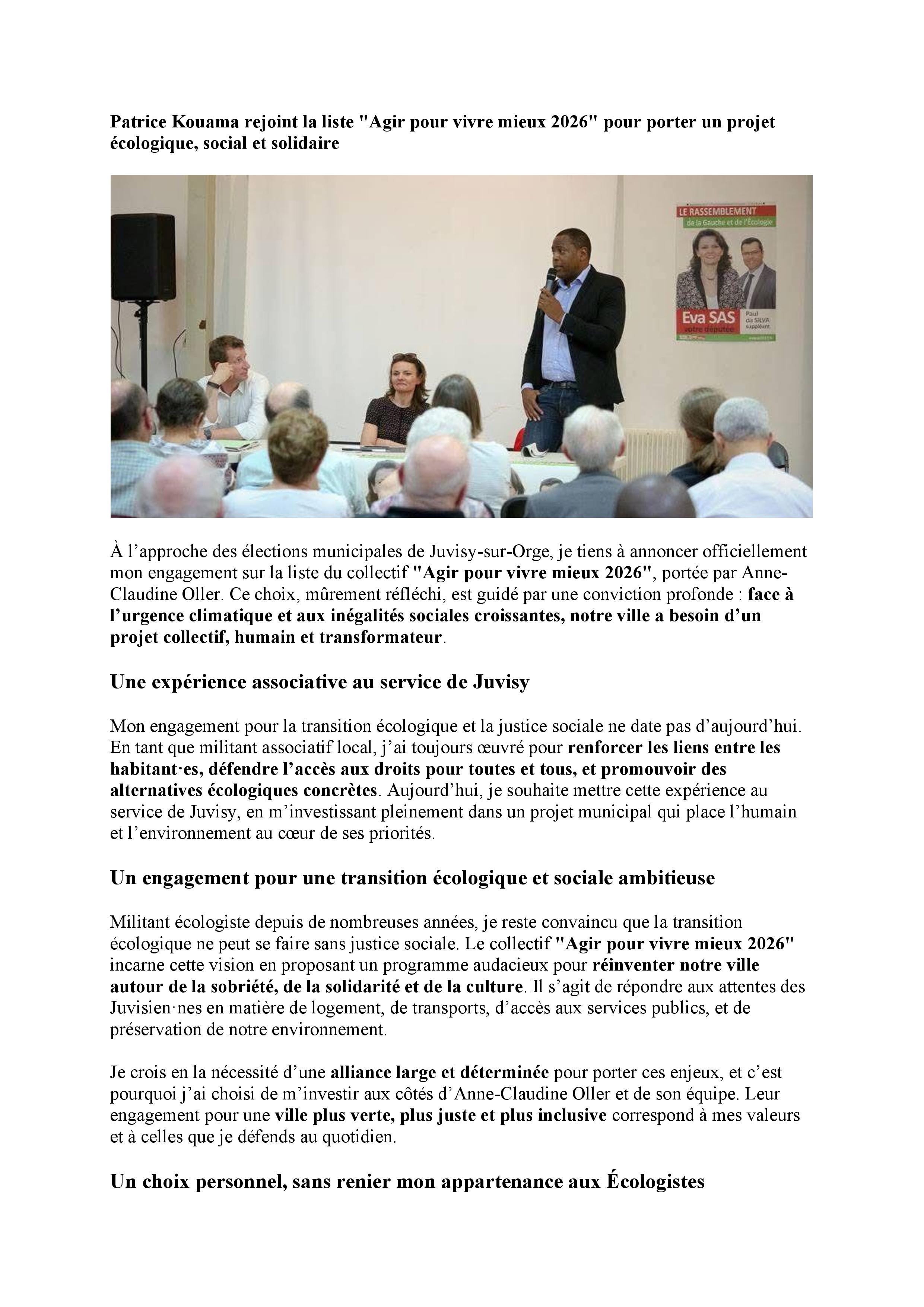Il existe donc une rumeur qui circule, parmi les agents de la Ville de Savigny, selon laquelle je serai le « gars de fou » de Patrice KOUAMA (conseiller municipal Les écologistes – groupe Bien vivre à Savigny canal historique), et qu’il sera sur ma liste municipale en mars 2026…