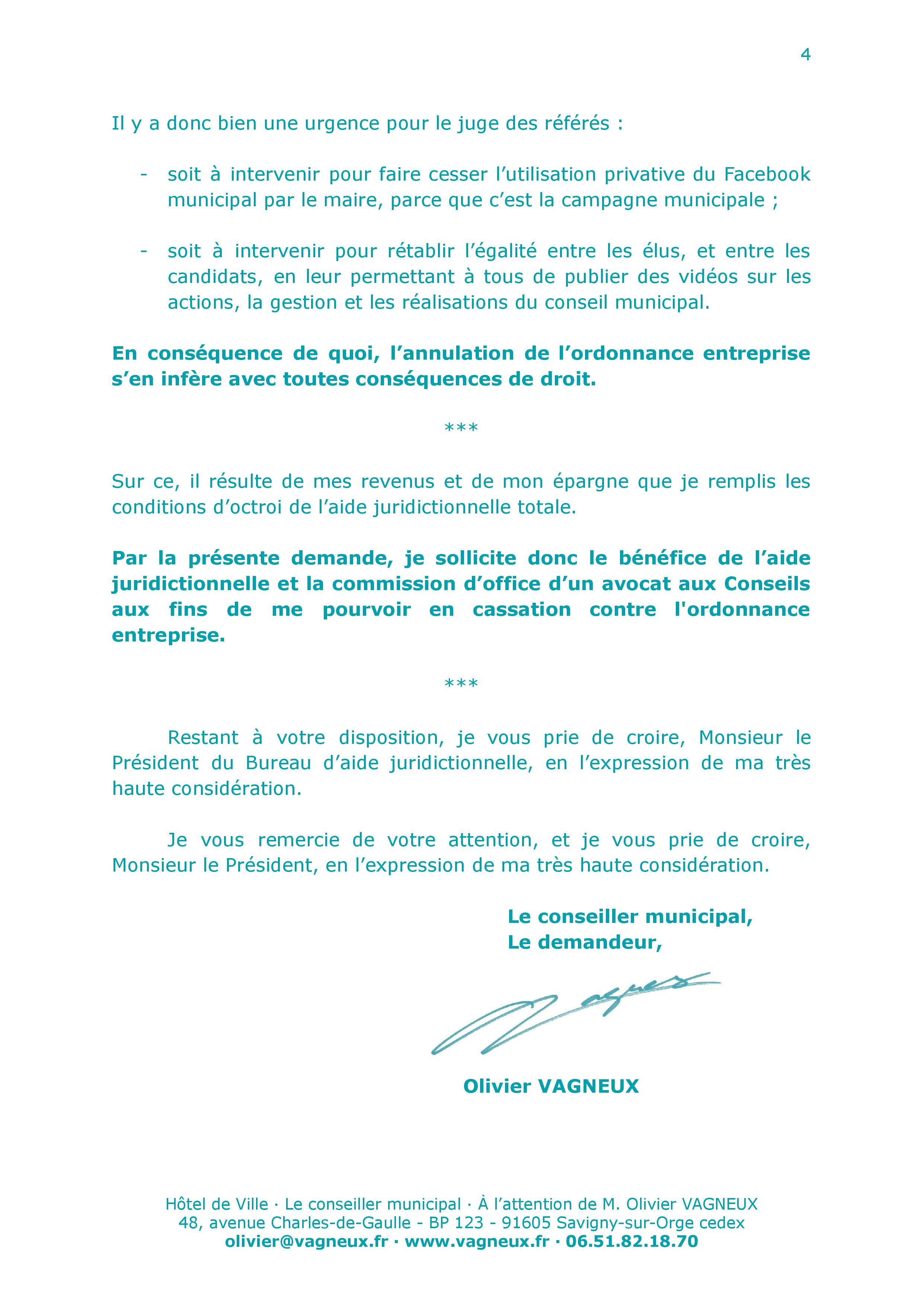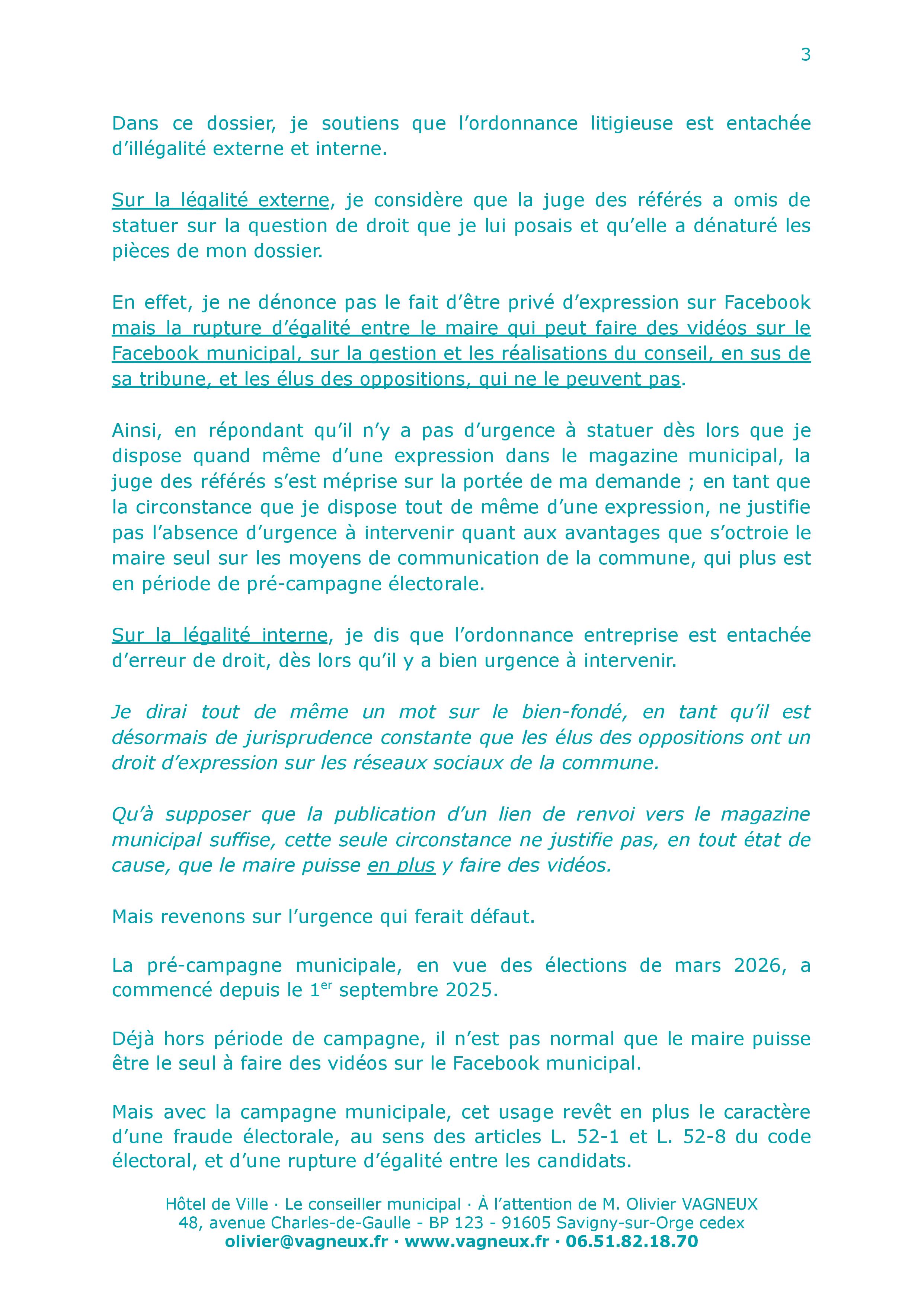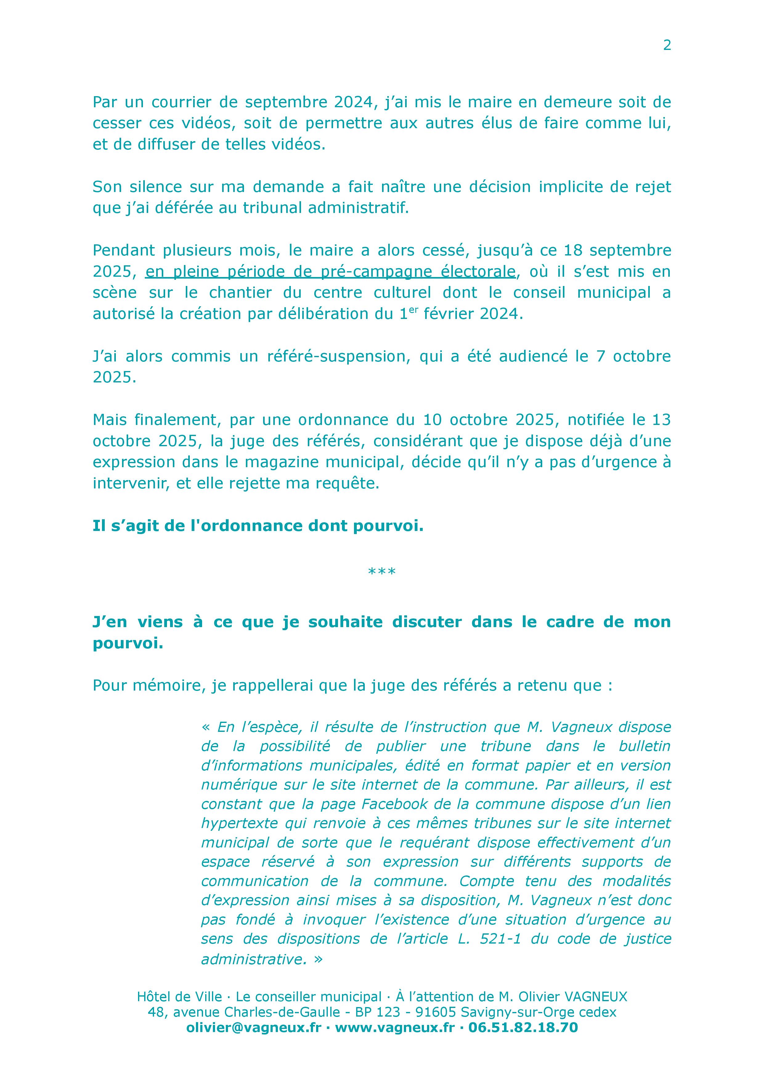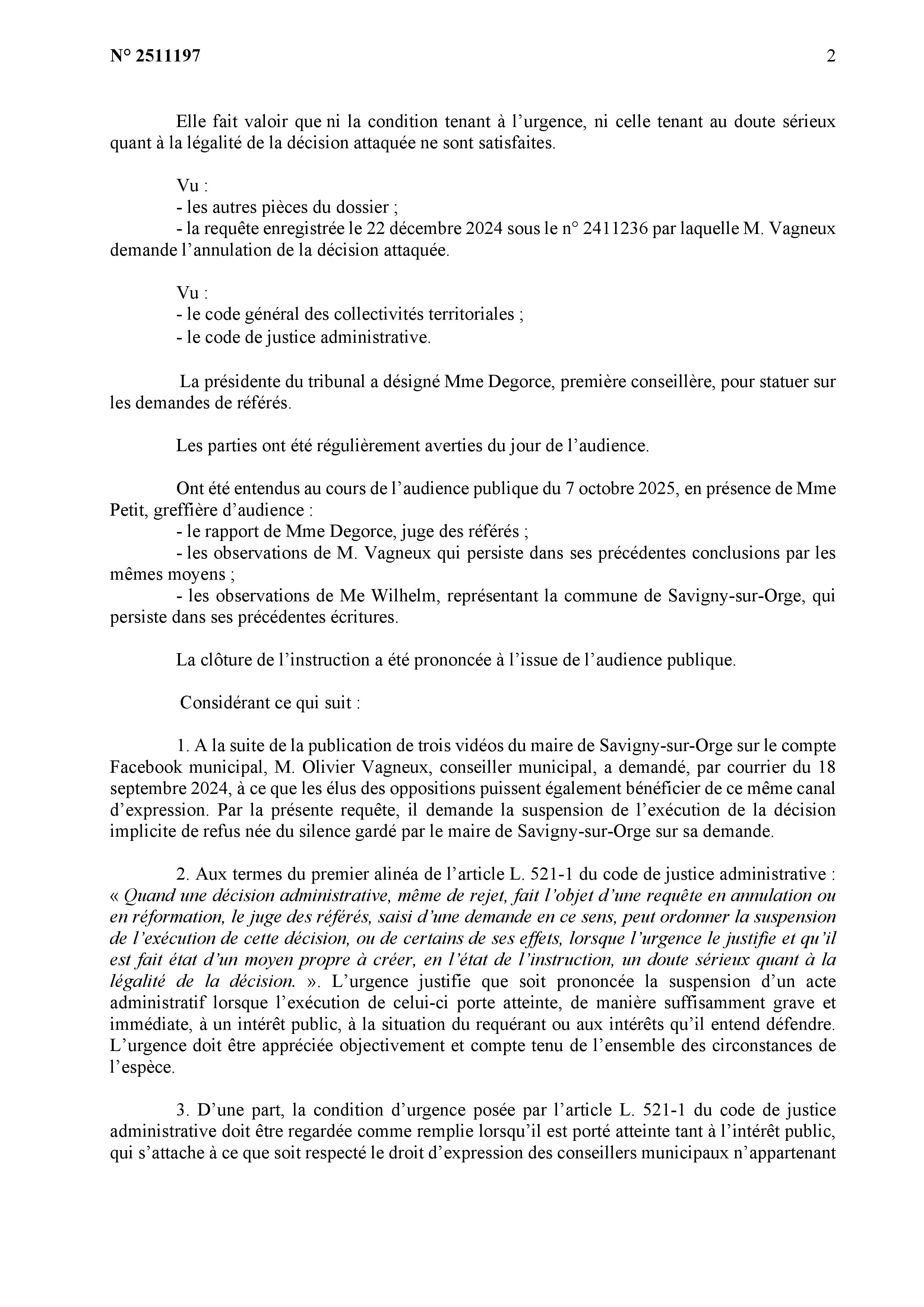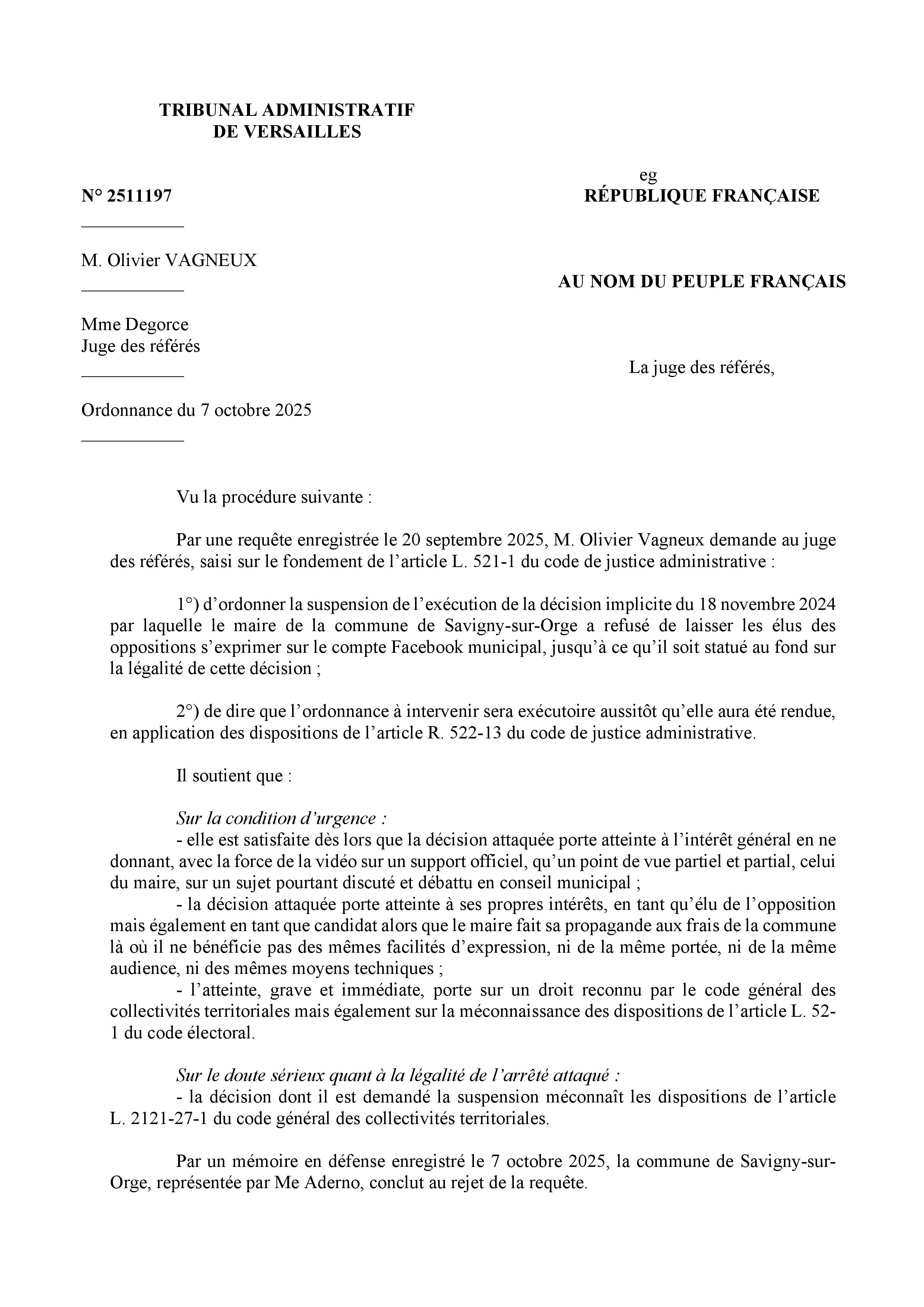 Mais la juge répond, à côté, en disant que oui, mais pas d’urgence, car VAGNEUX peut quand même s’exprimer dans le magazine municipal.