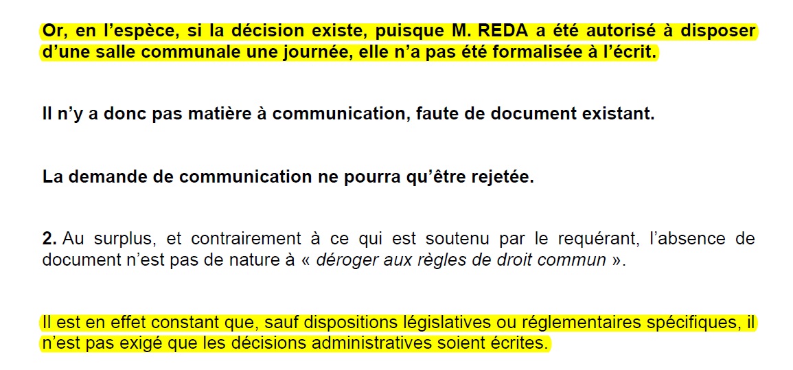 Le maire refusait. Je saisissais la Commission d’accès aux documents administratifs qui disait communicable un tel document. Le maire persistait en son refus. Je saisissais le Tribunal administratif de Versailles.