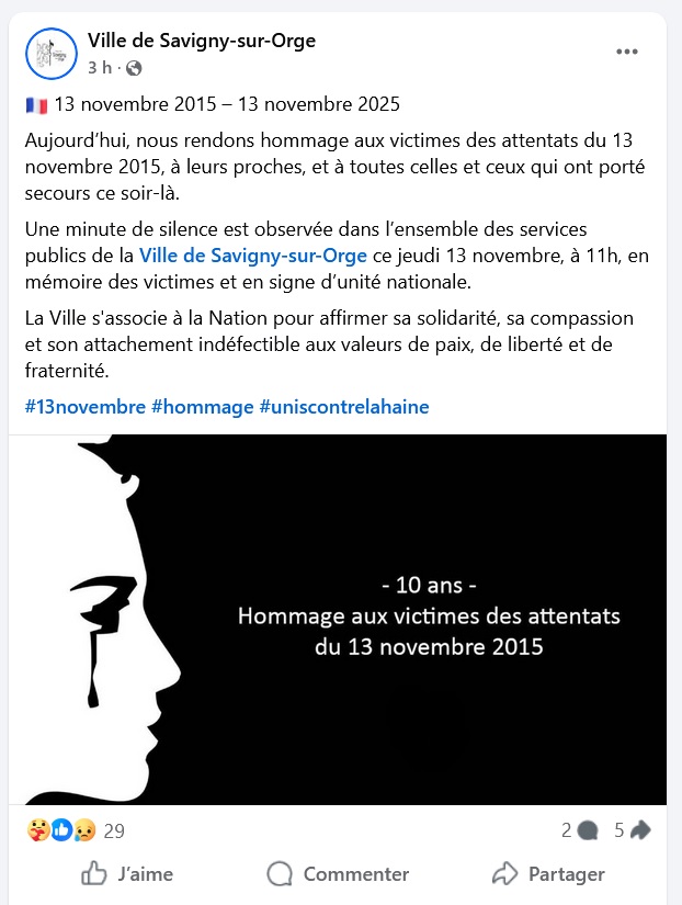Il publie à 11 heures 02 qu’il venait d’organiser une minute de silence à 11 heures 00.
