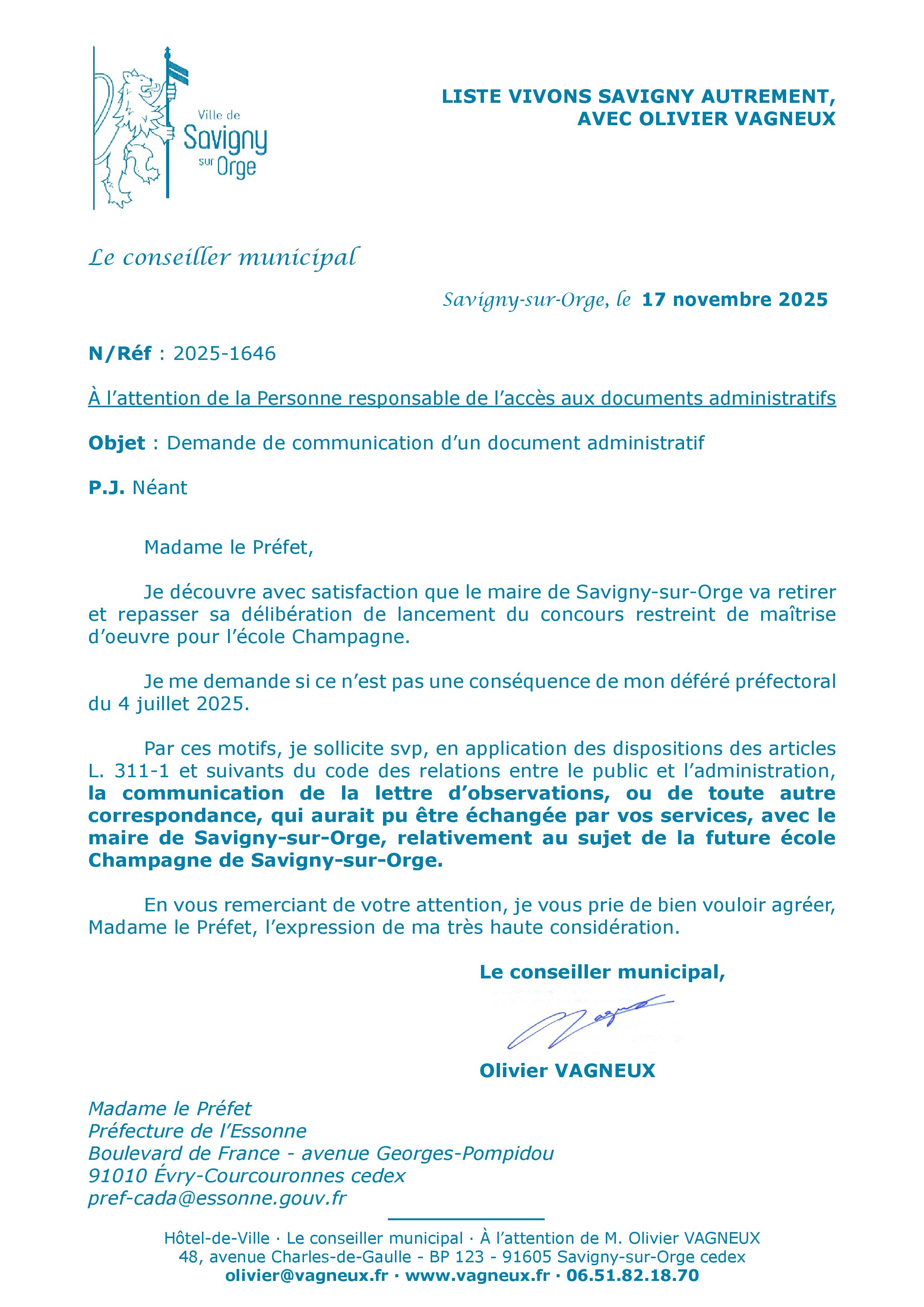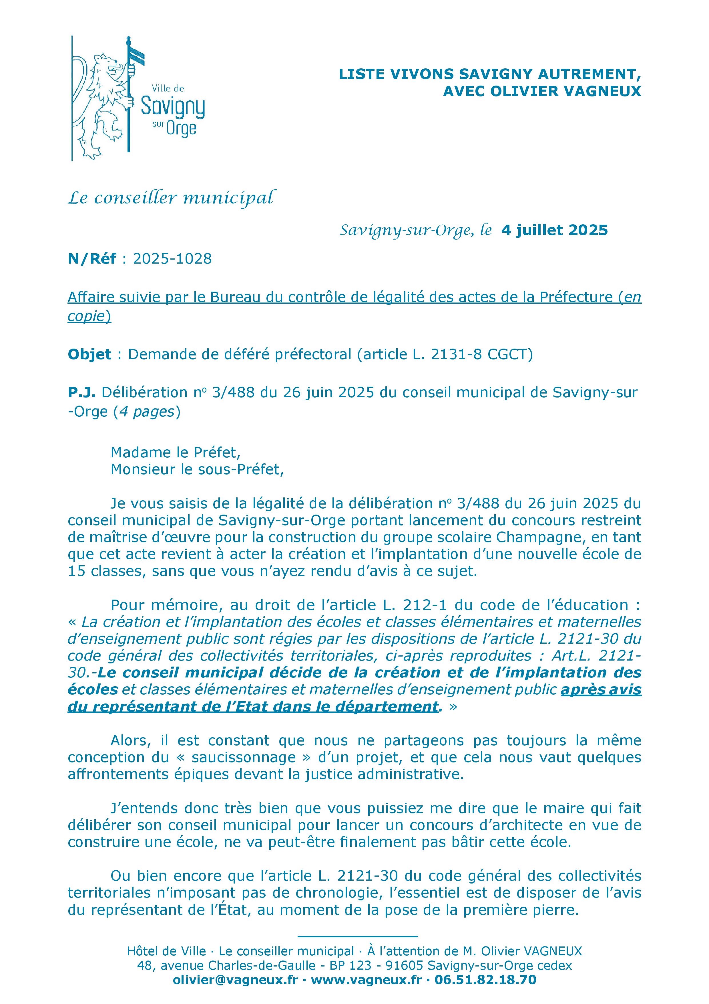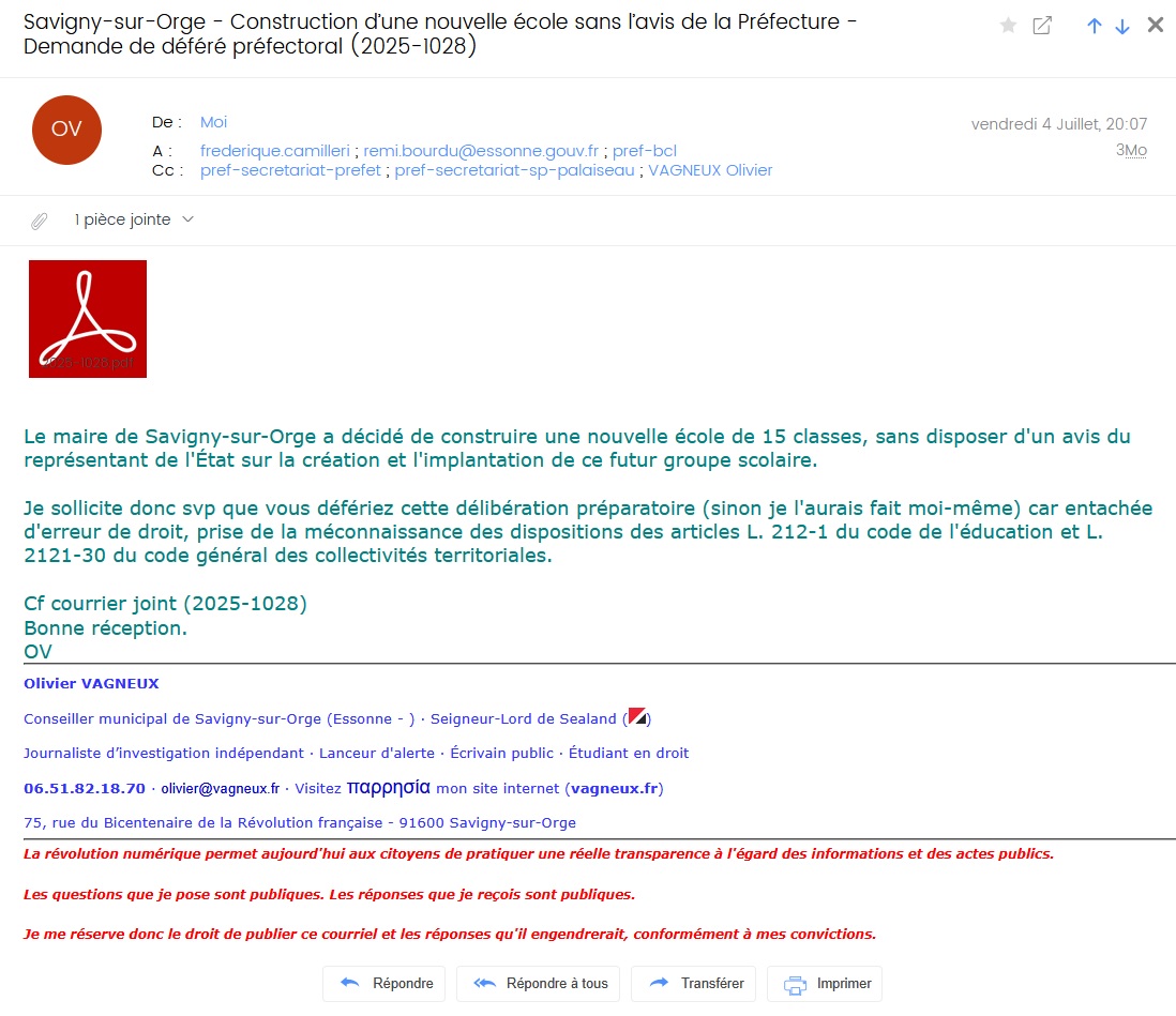 Est-ce lié à ma demande du 4 juillet 2025 de déféré préfectoral adressée à la préfète et au sous-préfet ?