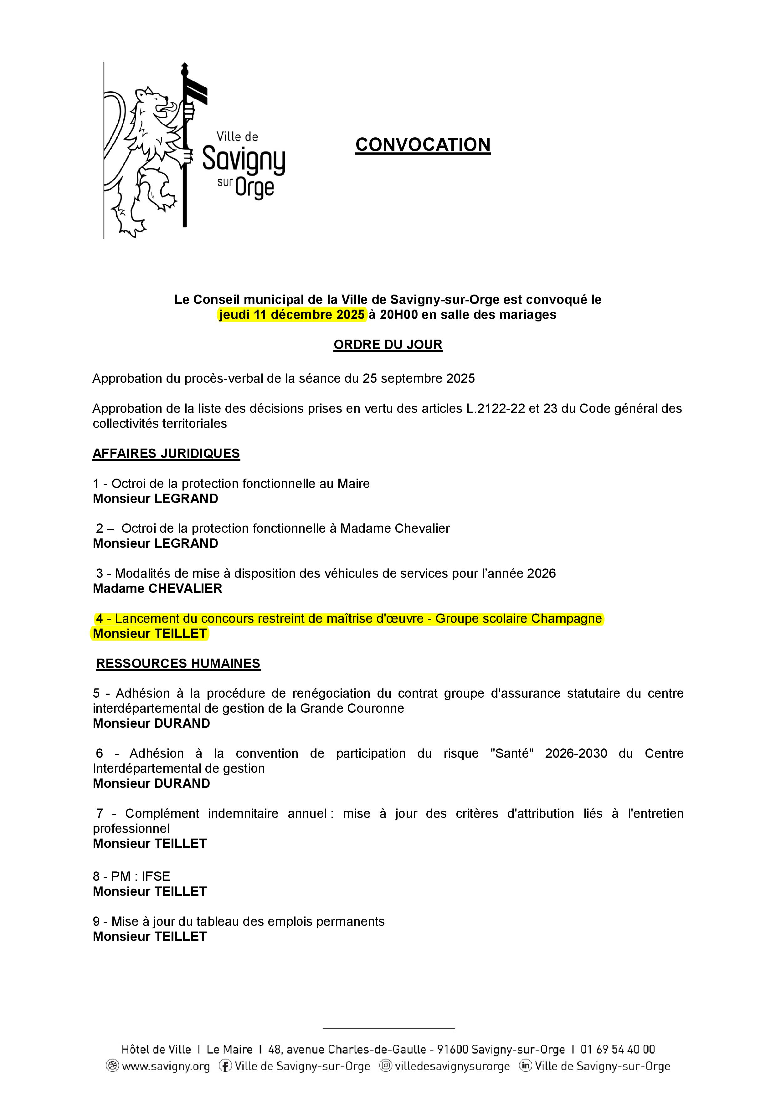 (1) L’ordre du jour de la séance du 11 décembre 2025