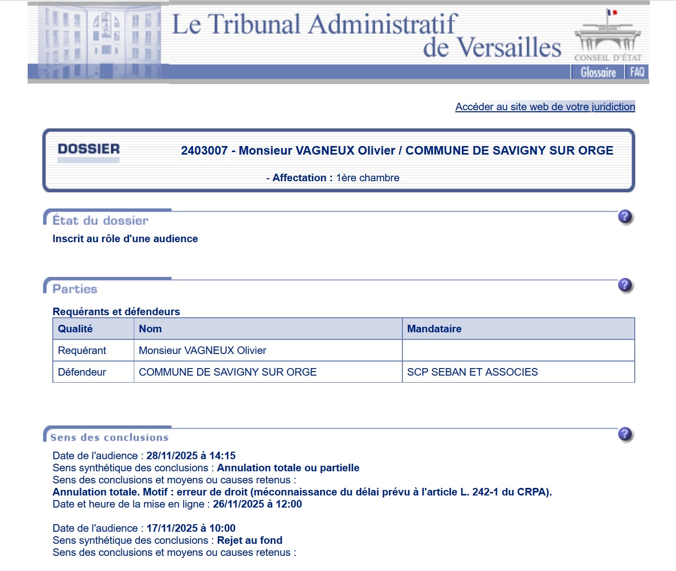 Finalement, c’était surtout pour dire que j’étais contradictoire à contester la protection fonctionnelle ET la délibération de retrait de la protection fonctionnelle ; et que ma requête, qui finit quand même sur ma victoire, ce qui en établit le bien-fondé, faisait peser des « conséquences délétères » pour la Commune et pour le Tribunal.