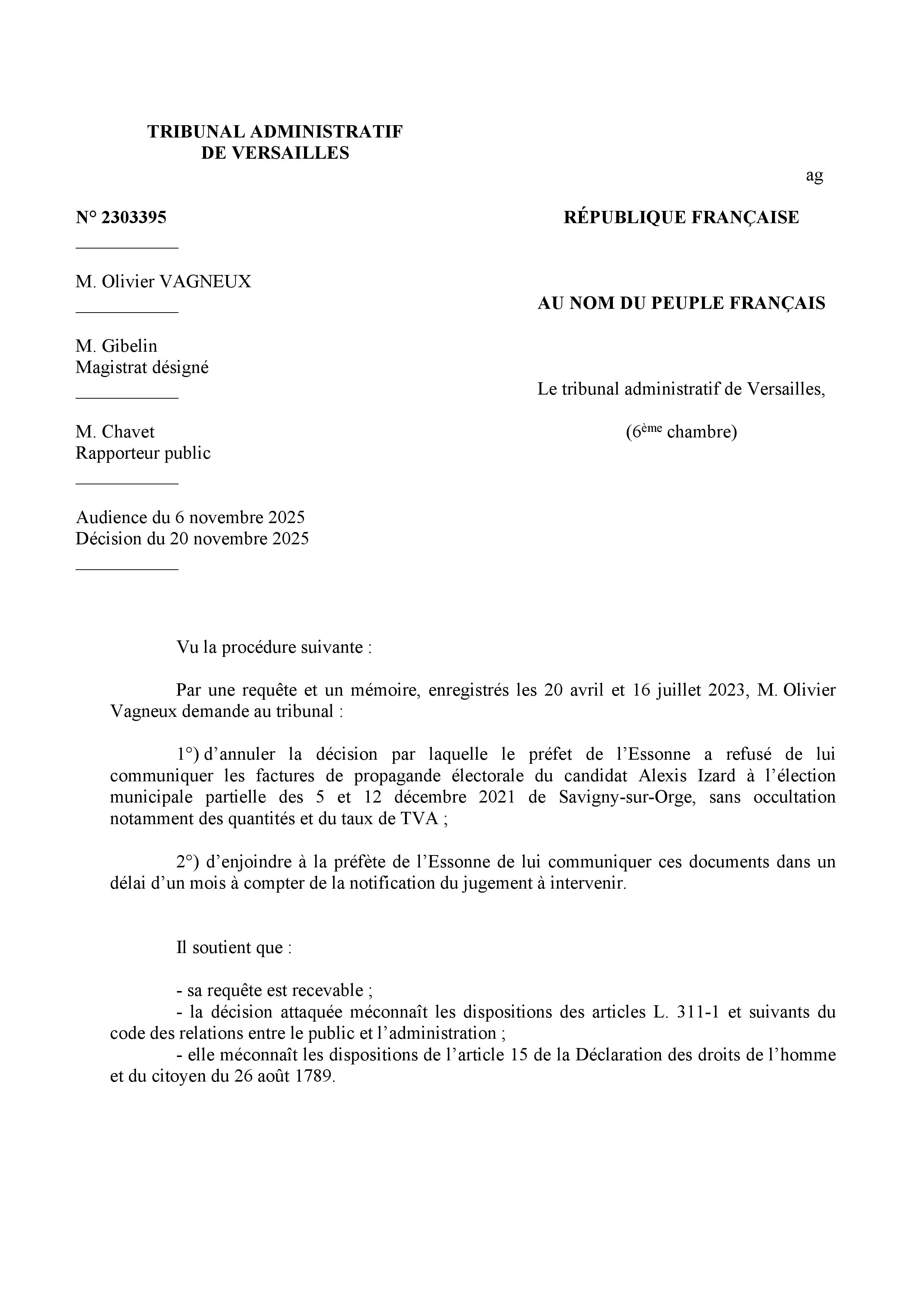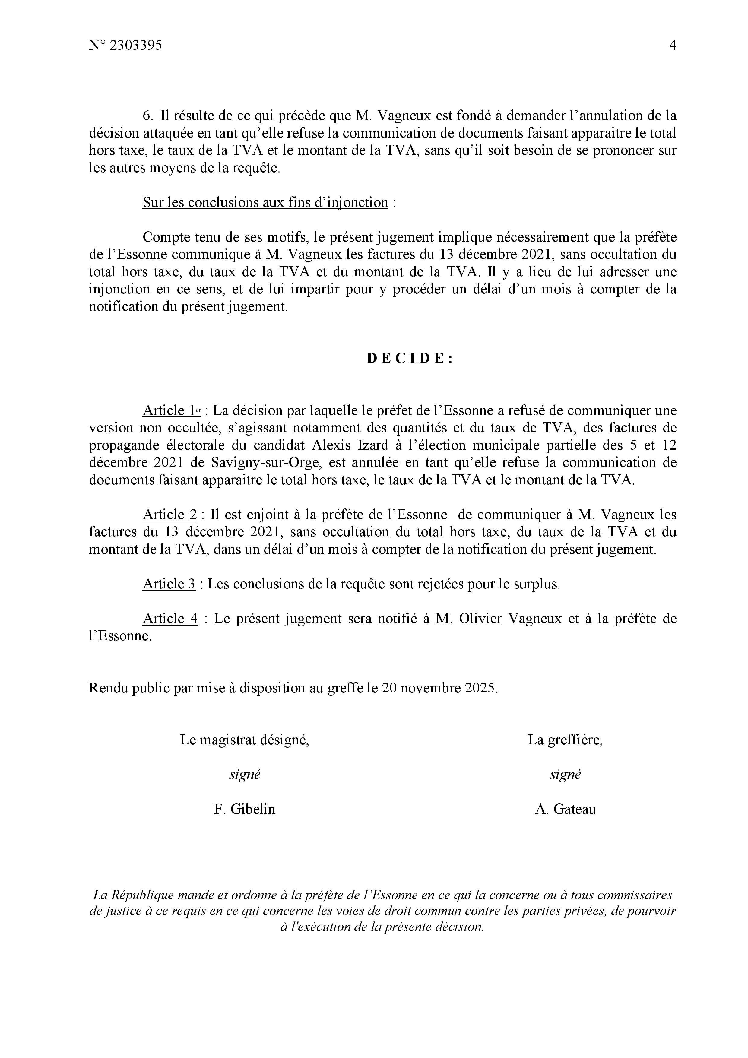 C’est ce matin du 4 décembre 2025 que la Préfecture de l’Essonne a exécuté ce jugement du 20 novembre 2025, par laquelle je l’ai fait condamnée.