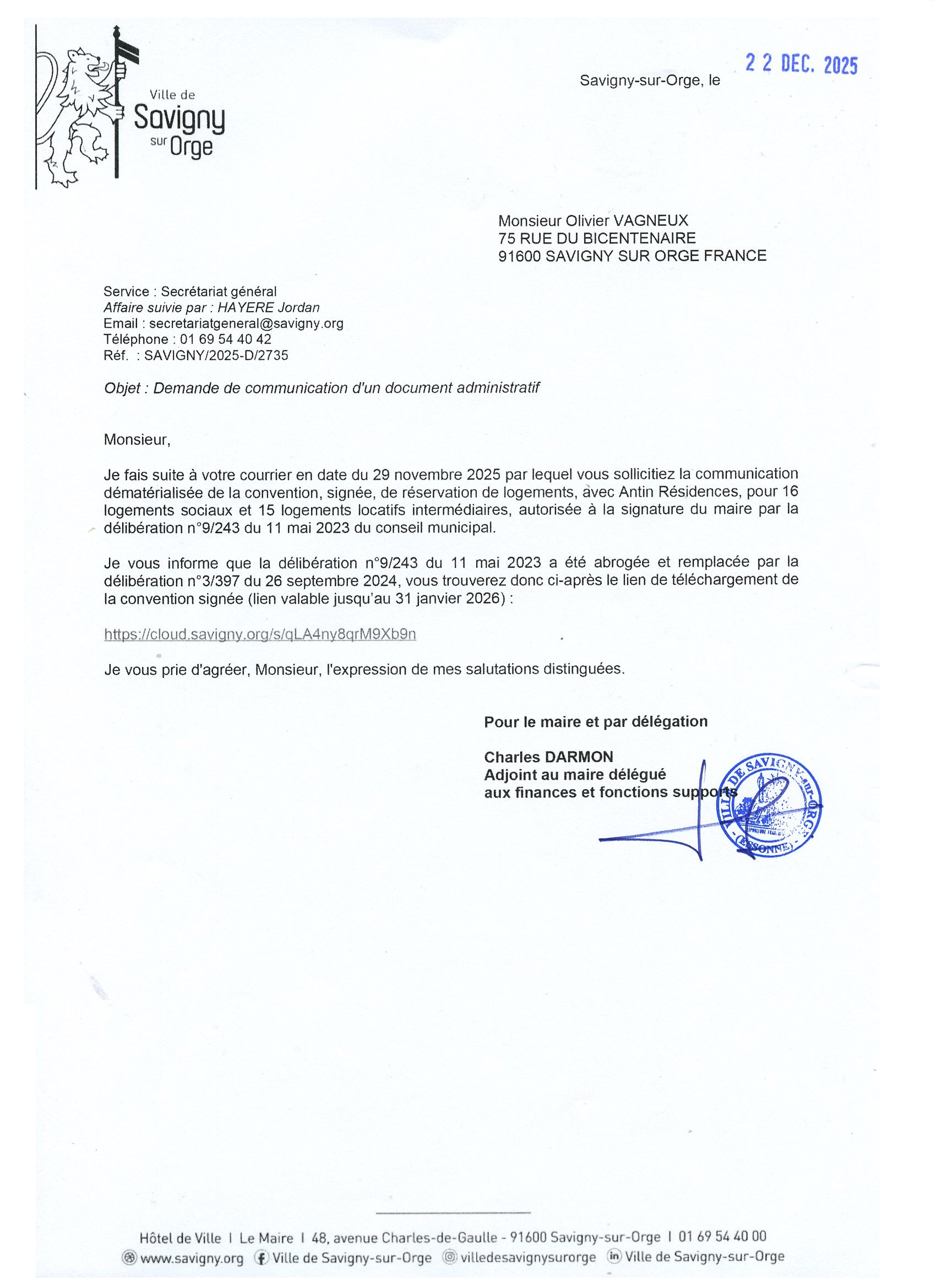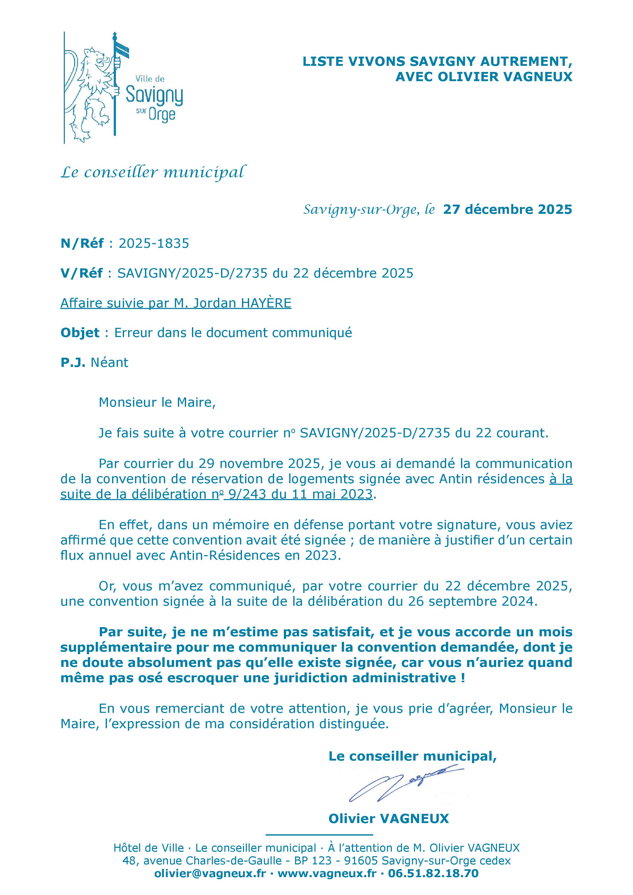 TEILLET qui défend personnellement et signe : nous avons passé 5 conventions de réservation pour X logements sociaux sur un total de Y,
