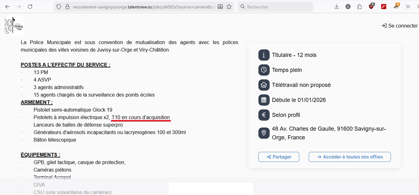 Mais surtout, quand tu vois qu’à Savigny, ils sont prêts à faire des faux en écriture publique, alors que ce sont des policiers municipaux, imagine quand tu leur mets un flingue dans les mains (même un pistolet à impulsion électrique) !