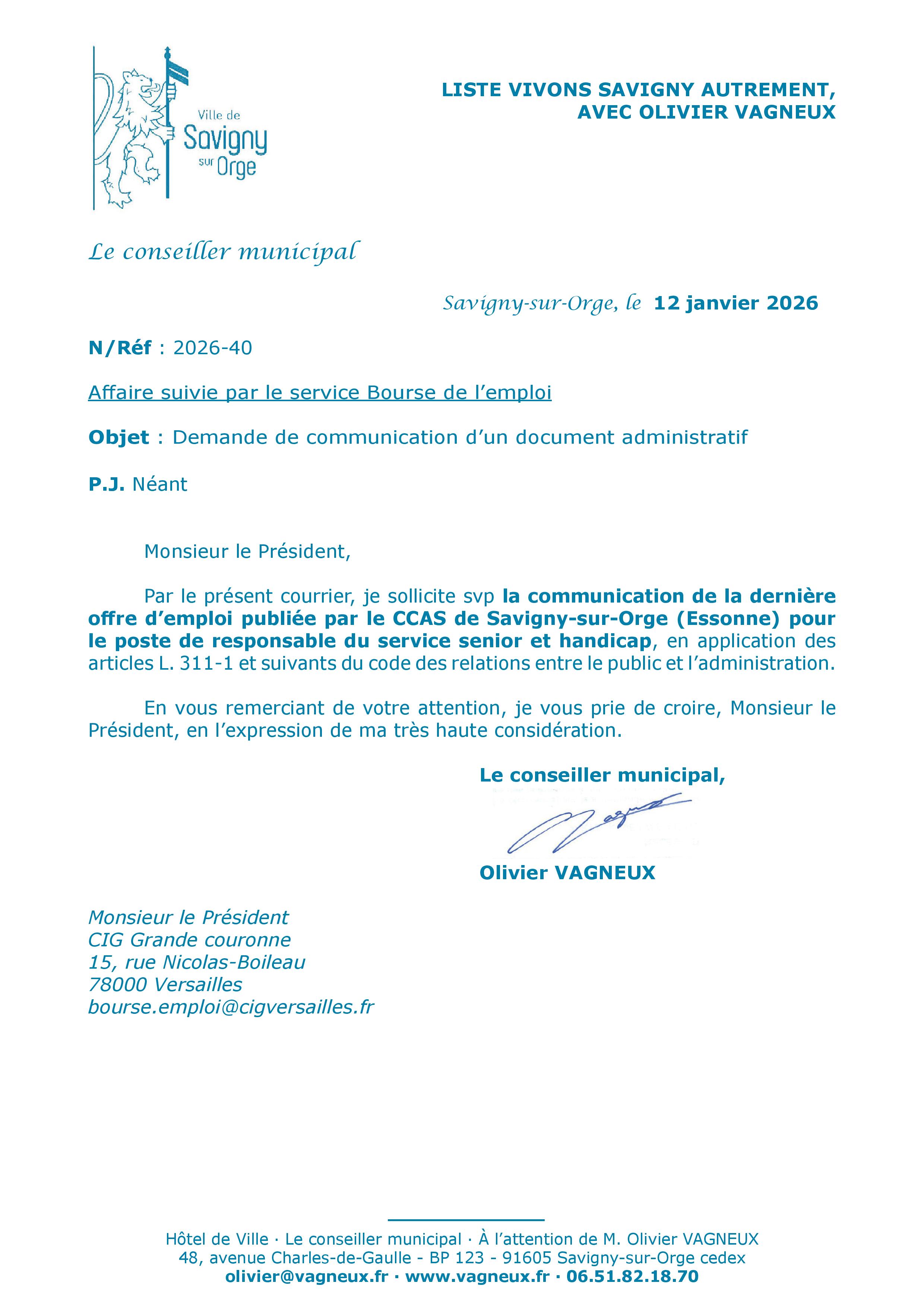 Dès lors, toute mon attention se trouve nécessairement retenue par ce qui se passe depuis quelques mois au CCAS de Savigny, qui me semble aussi dysfonctionnel, dans sa gestion des agents, et des usagers, que le reste de la Commune ; et où il y a beaucoup à dire, à faire et à réformer.