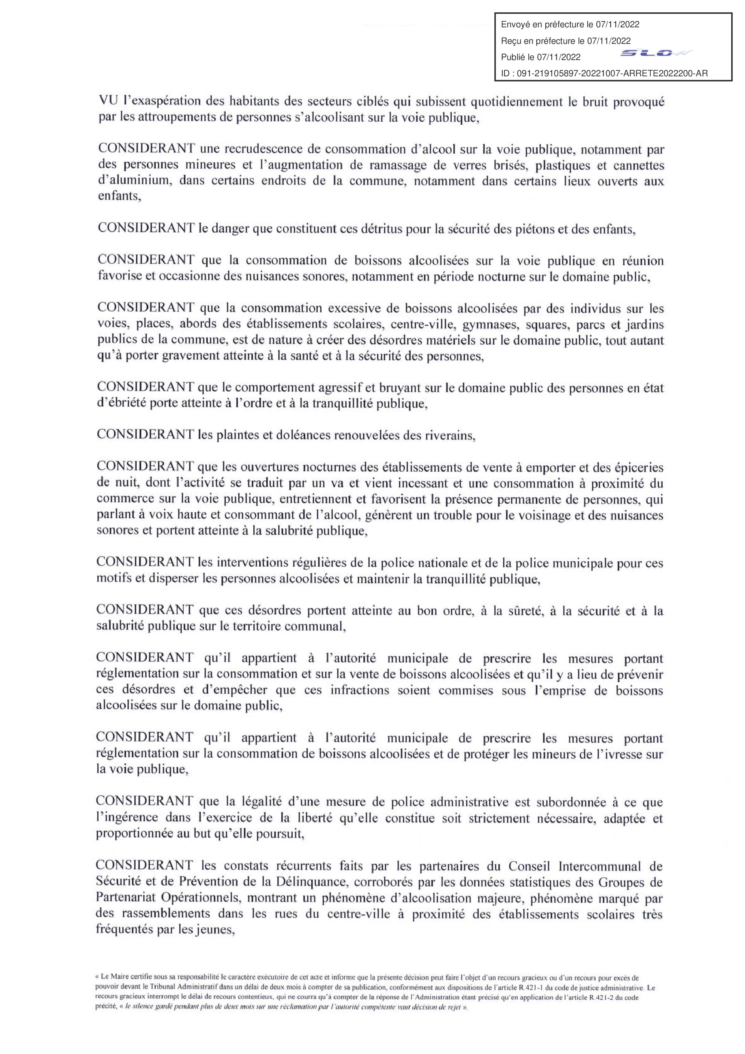 Donc c’est pas faux, mais la PM pourrait agir dès 20 heures 00 grâce à l’arrêté municipal publié en-dessous.