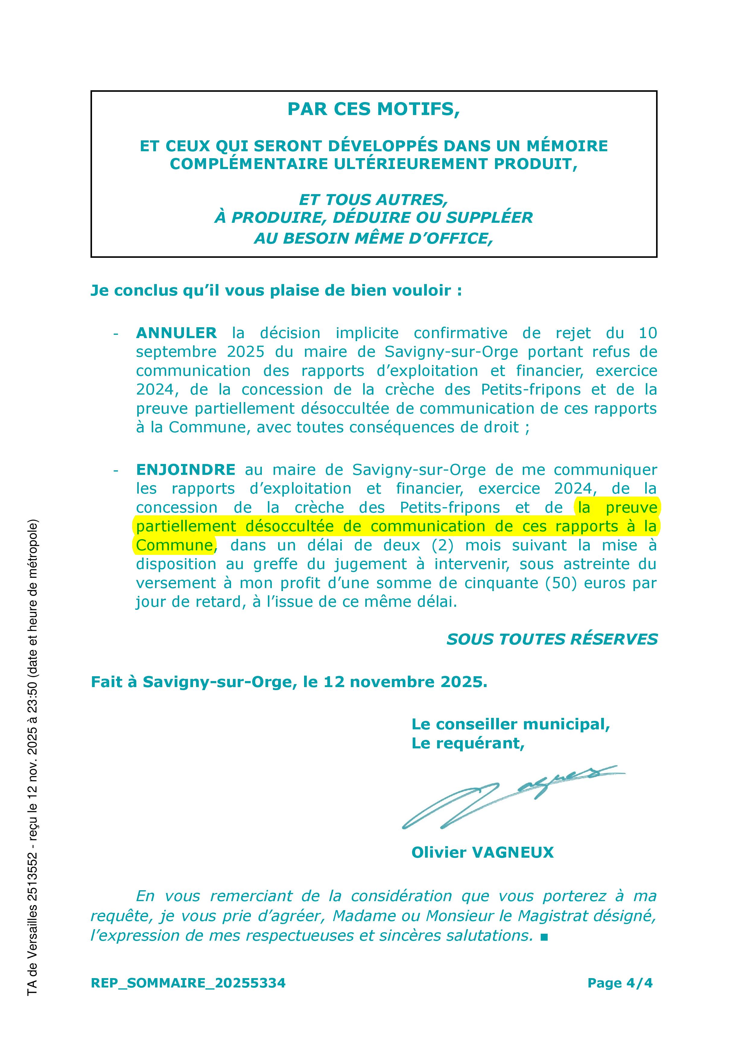 J’aimerais vous dire qu’il y a des gens au secrétariat général de la Mairie de Savigny qui ne m’aiment pas parce que je leur écris que ce sont des illettrés et de retourner en CE2 quand ils mettent un infinitif à la deuxième personne du pluriel de l’une de mes interventions ; et donc qu’ils seront sur le premier radeau à dériver dans l’Orge à compter du lundi 29 mars 2026.