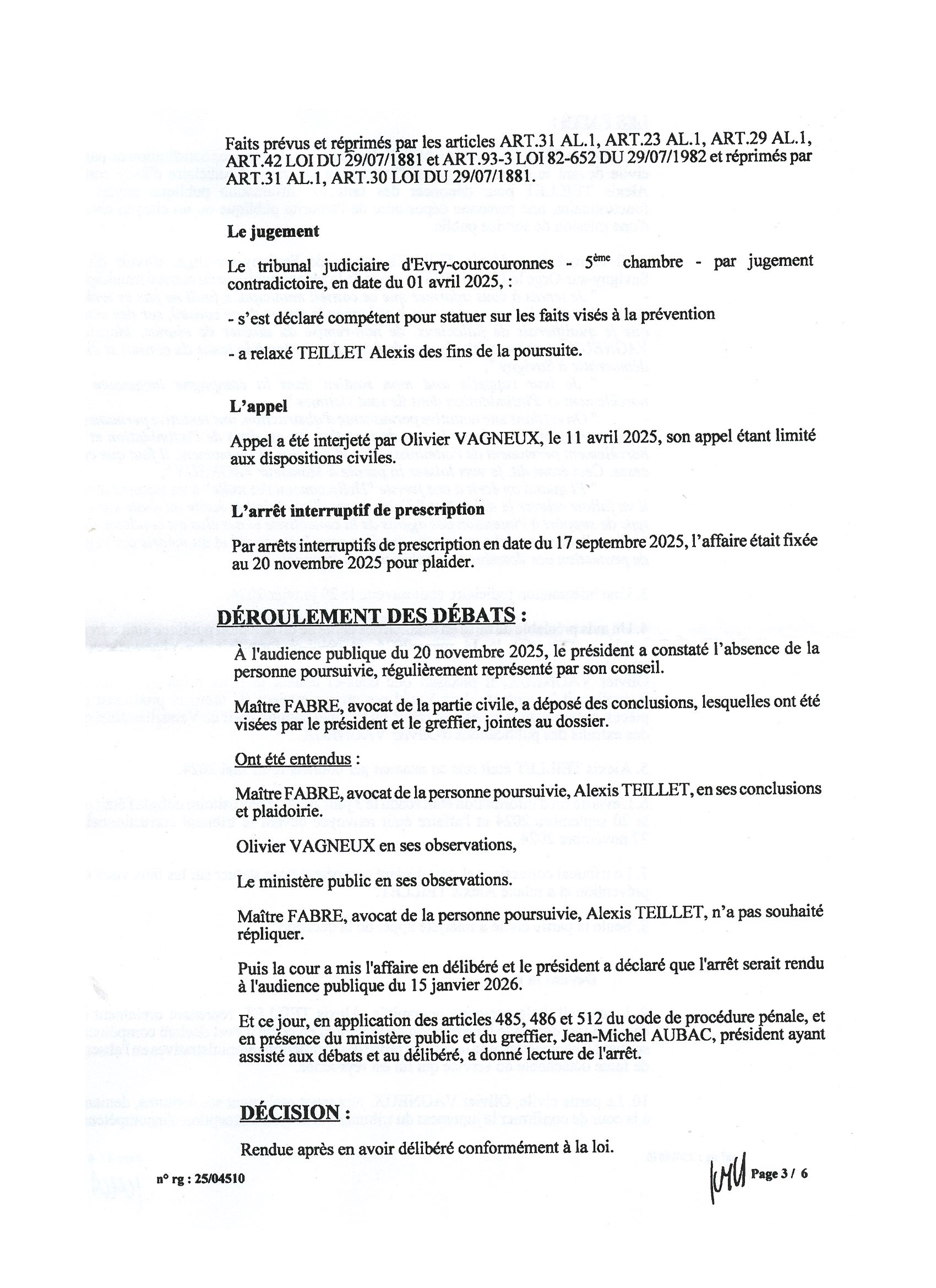 À relever que l’avocat général (représentant le Ministère public) avait également demandé la jonction de l’incident au fond (donc qu’il ne croyait pas lui-même à l’exception de TEILLET).