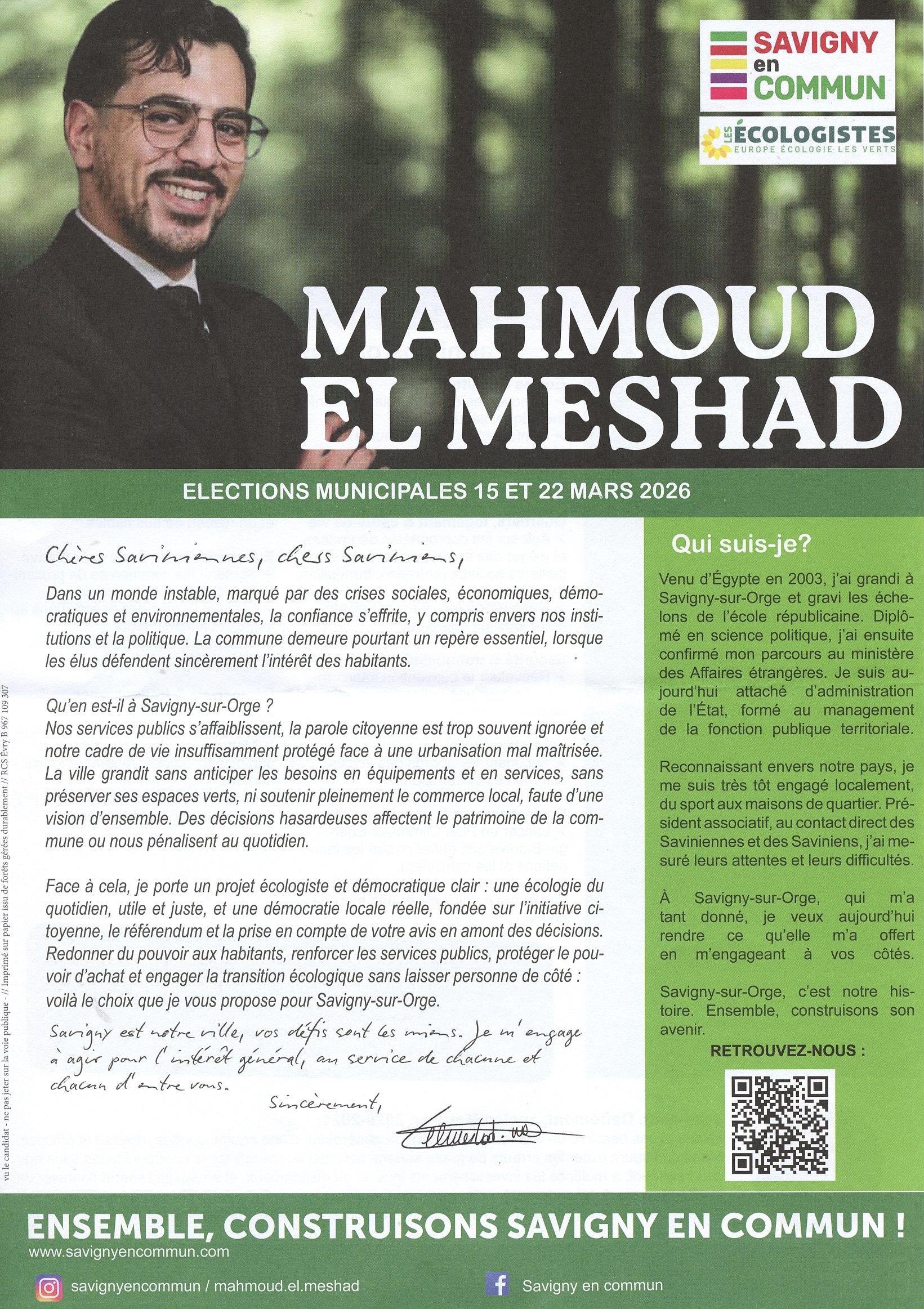 • Municipales 2026 à Savigny-sur-Orge : apparemment, Mahmoud EL MESHAD (LÉ) n’a pas eu le mémo sur l’écriture inclusive…