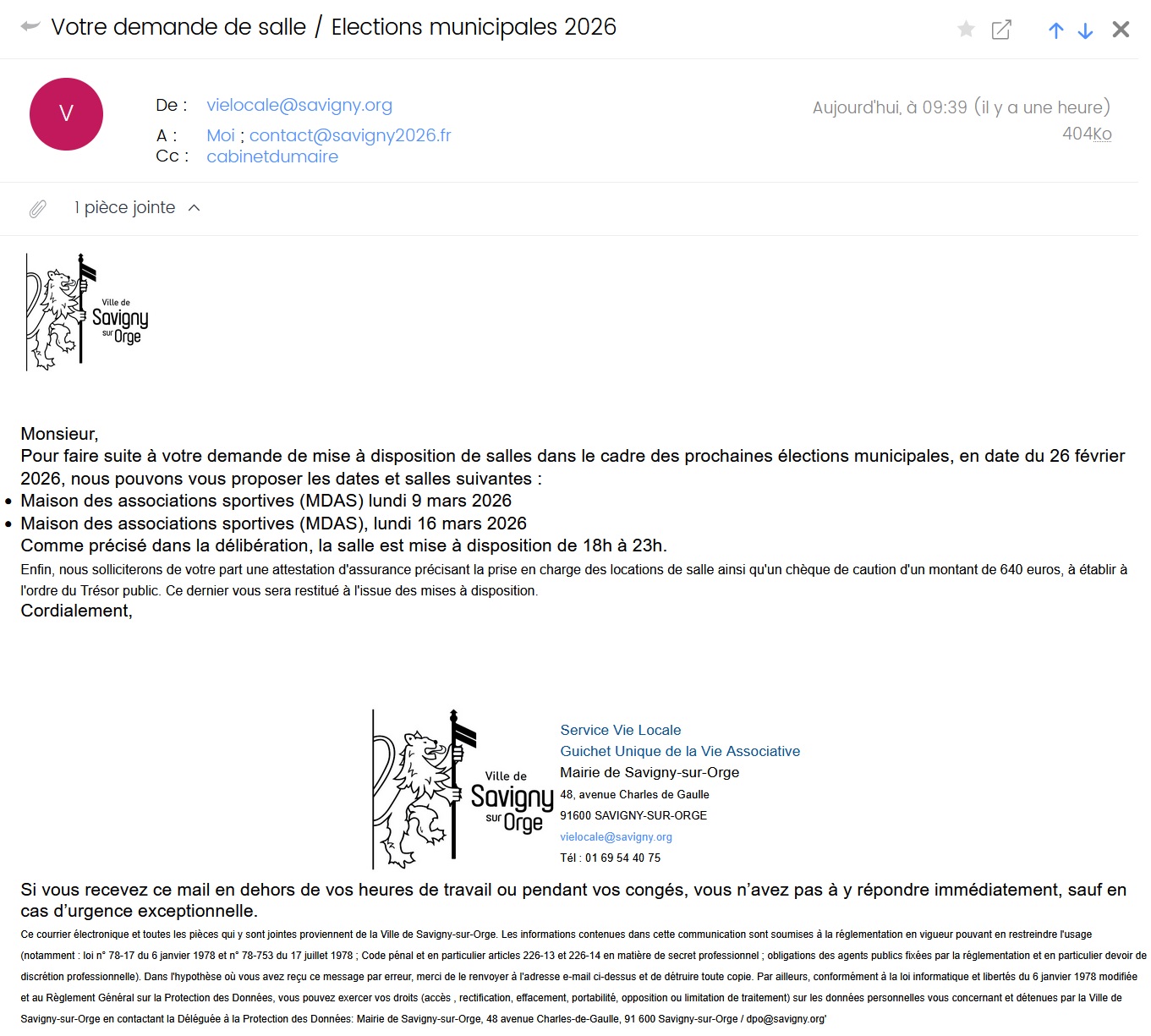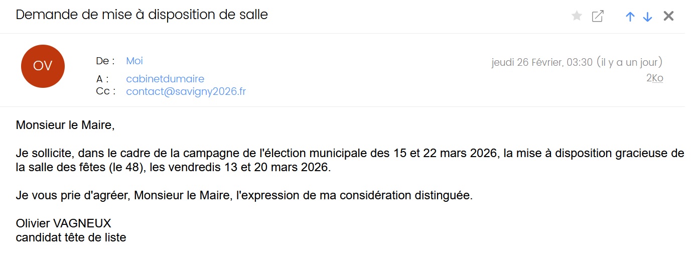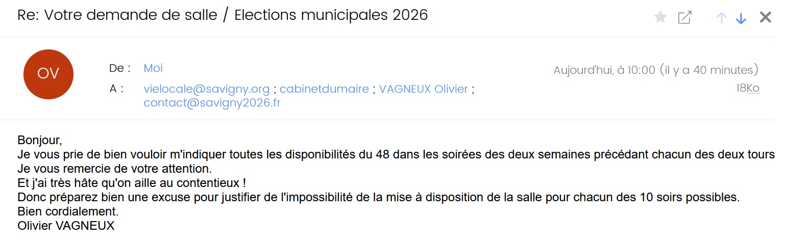 Et donc, en réponse à ma demande de la salle des fêtes, les 13 et 20 mars 2026, la nana du guichet vie locale me propose la maison des associations sportives les lundis 9 et 16 mars 2026.