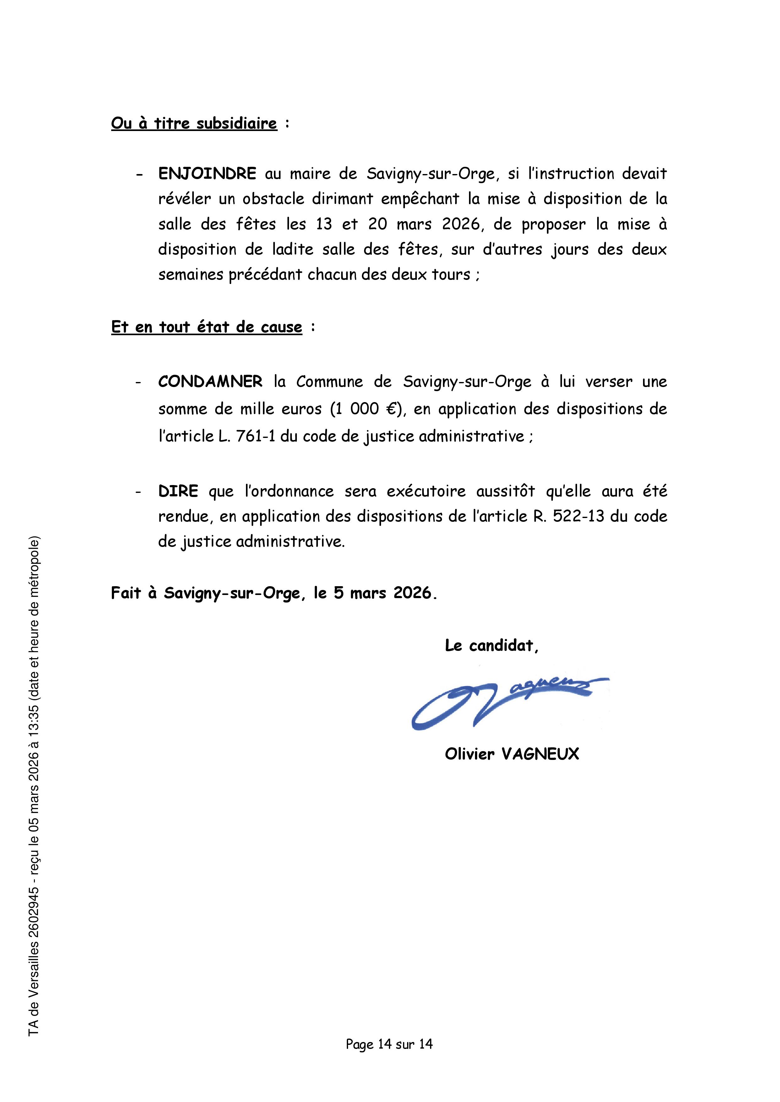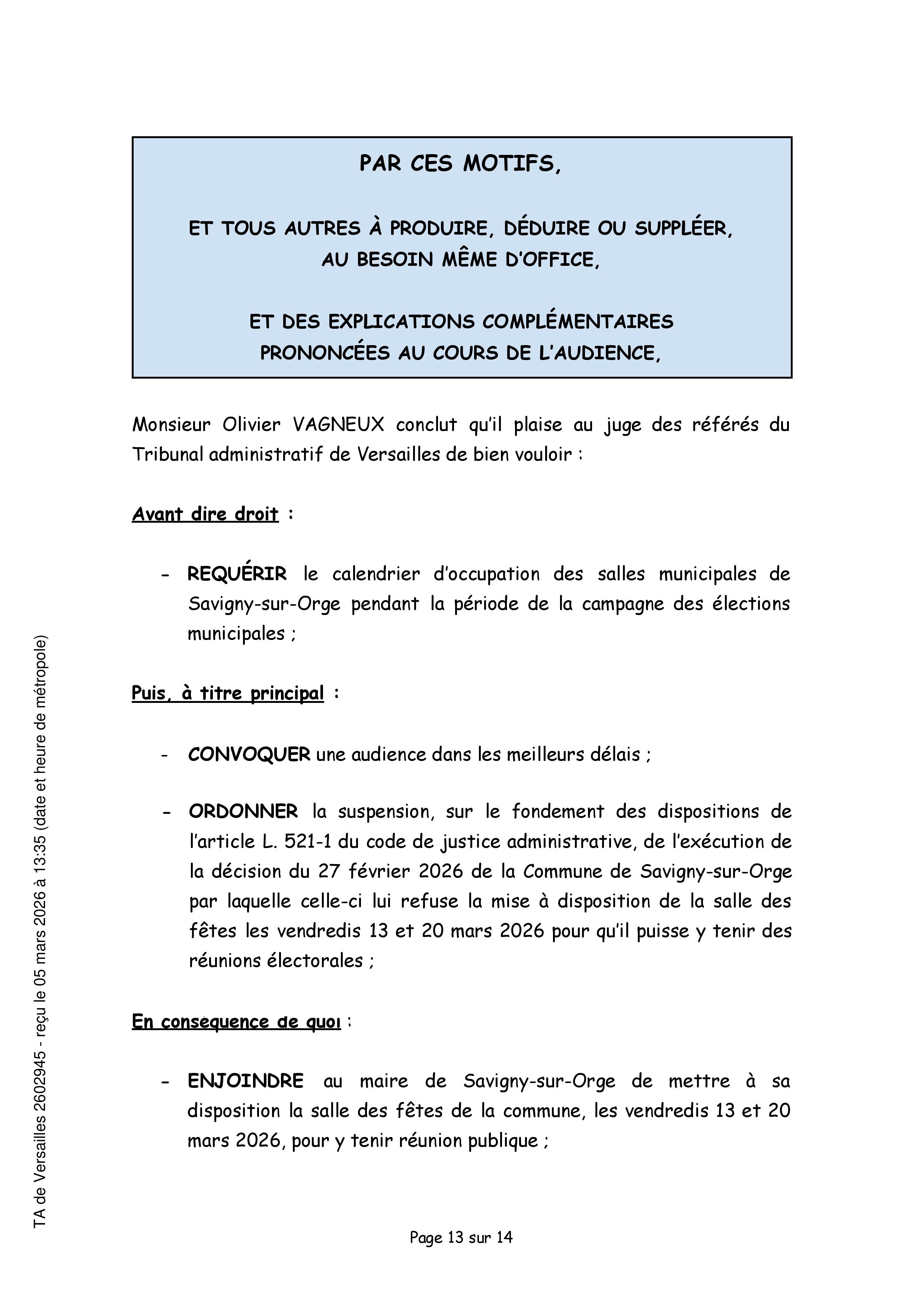 Pour ma part, j’ai demandé la salle des fêtes les 13 et 20 mars 2026.
