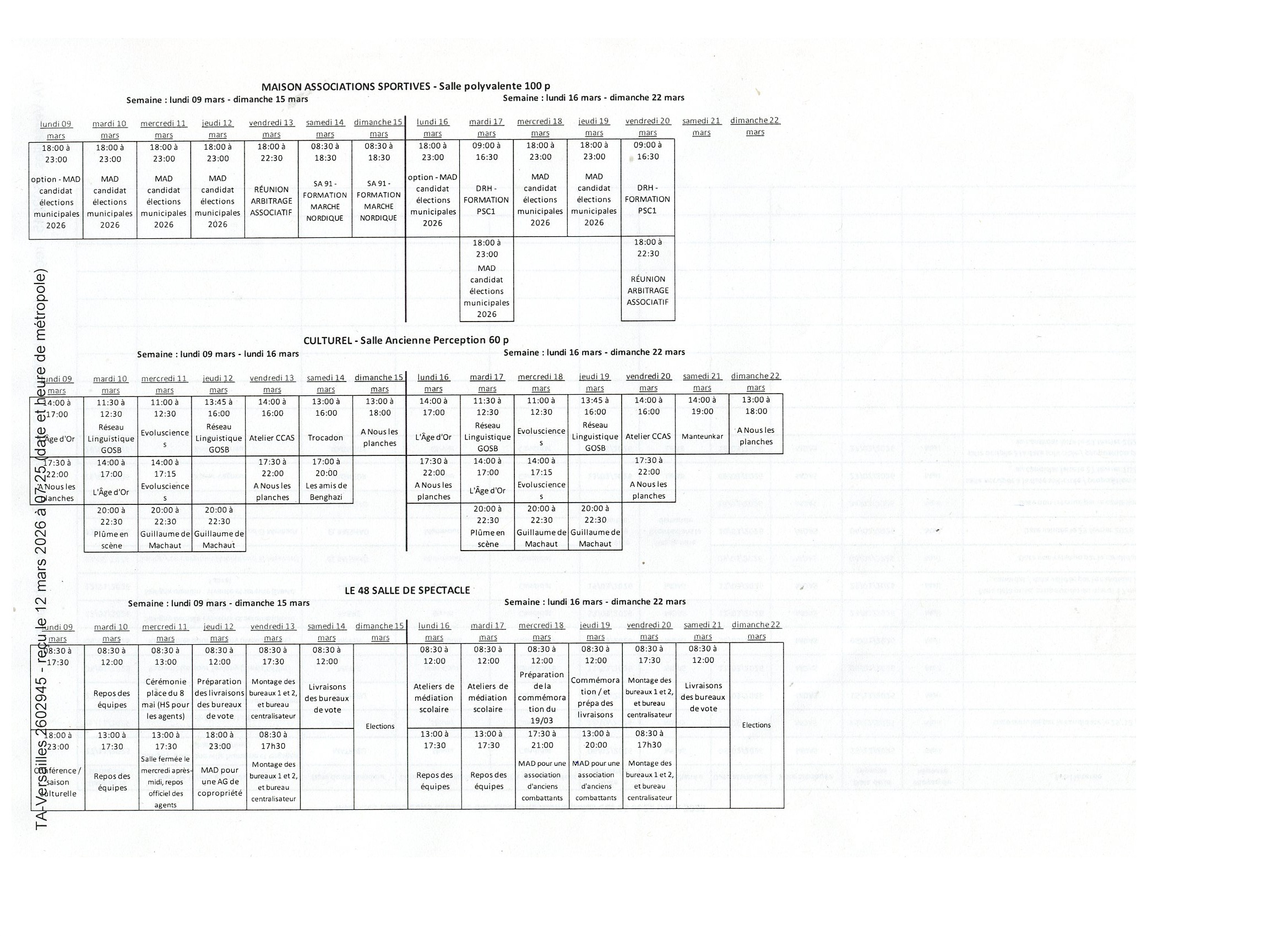 Pour gagner au tribunal administratif, et pour remporter l’élection de 31 voix en m’empêchant de tenir réunion publique en soirée, ce qui aurait nécessairement tout inversé, du genre moi à 50 et Alexis à 10, TEILLET a expliqué à un juge qu’il ne pouvait pas mettre à ma disposition la salle des fêtes (le 48), ni ce mercredi soir, ni ce jeudi soir, à cause de la FNACA qui occupait la salle Henri-Guffroy, connexe à la salle de spectacle.