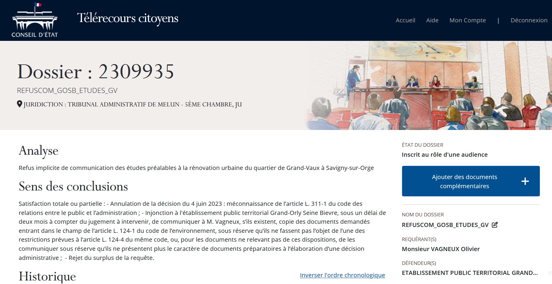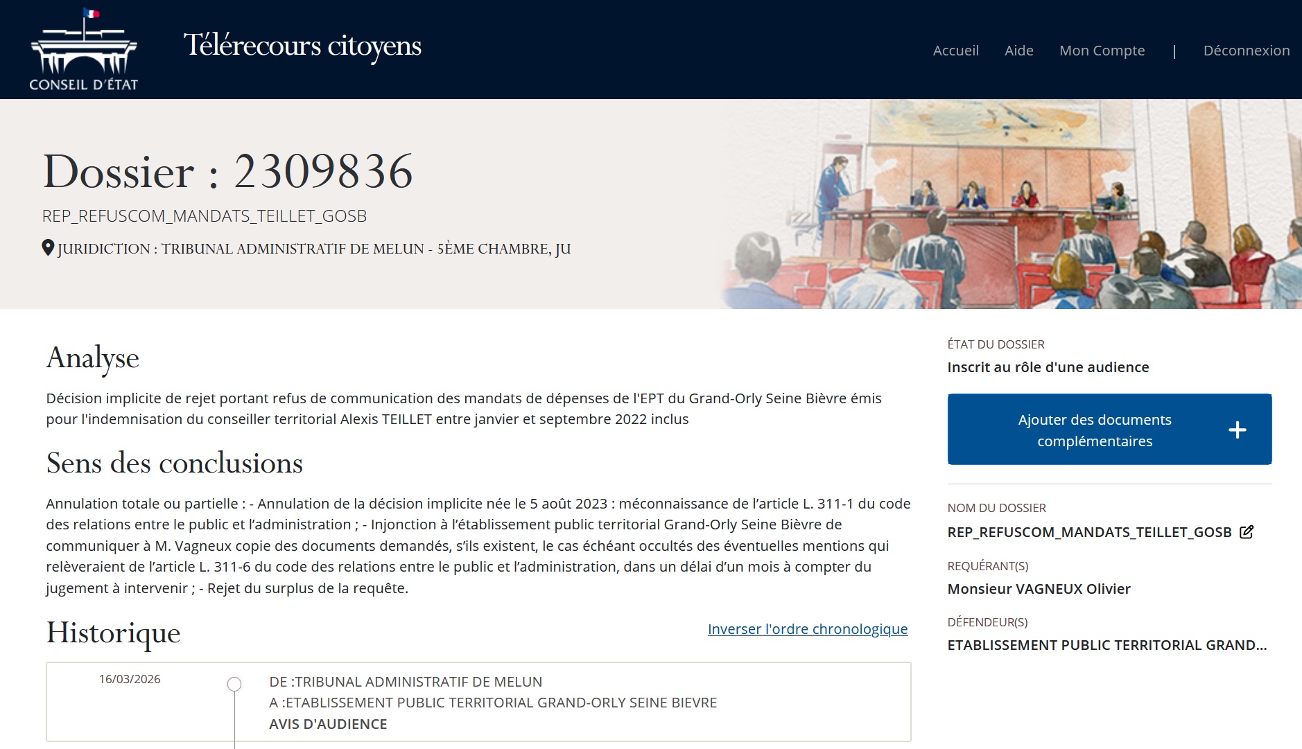 J’ai une audience prévue ce jeudi 9 avril 2026 à 14 heures 00 au tribunal administratif de Melun pour deux affaires :