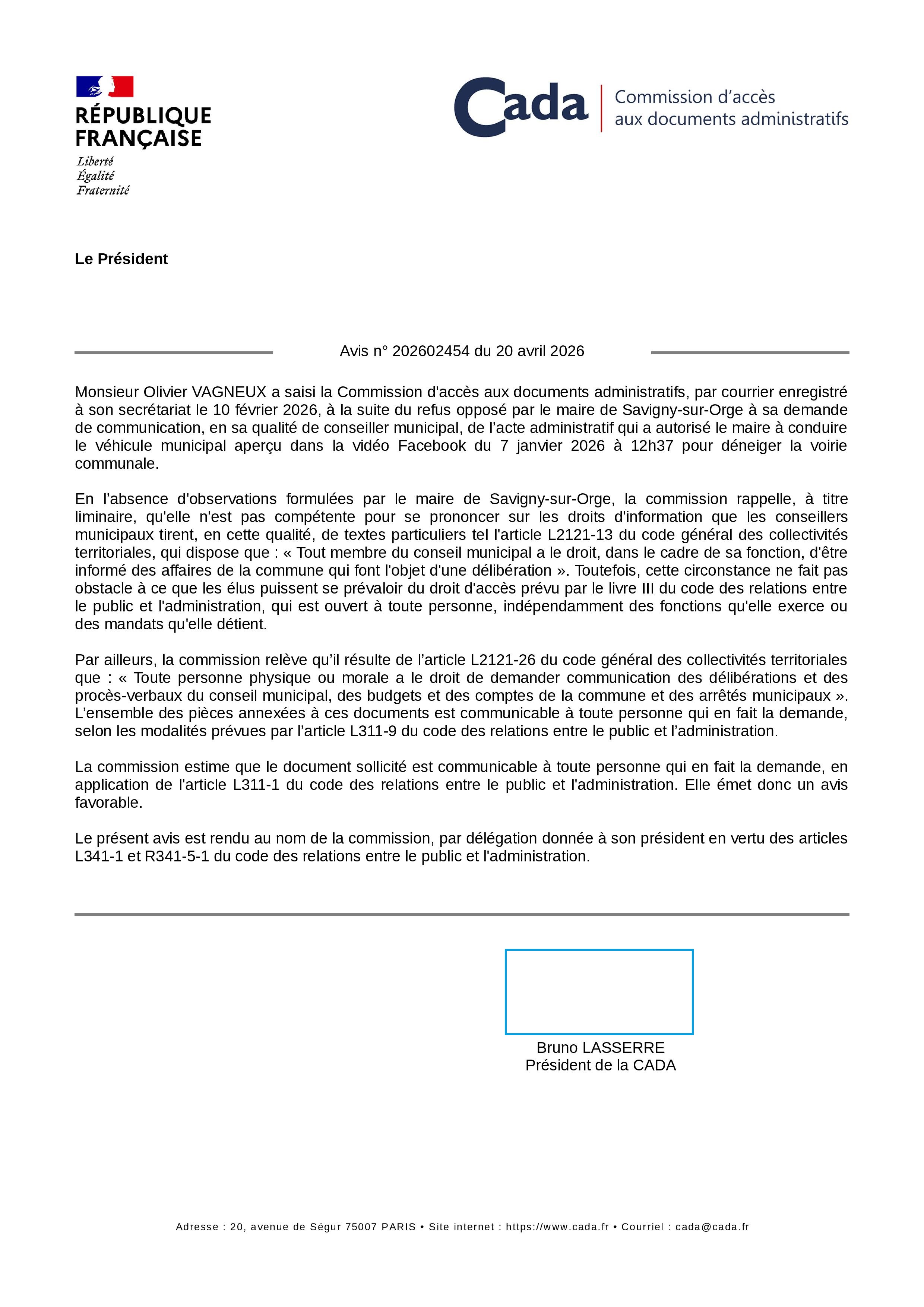 Mais la Commission d’accès aux documents administratifs dit que c’est un document communicable.