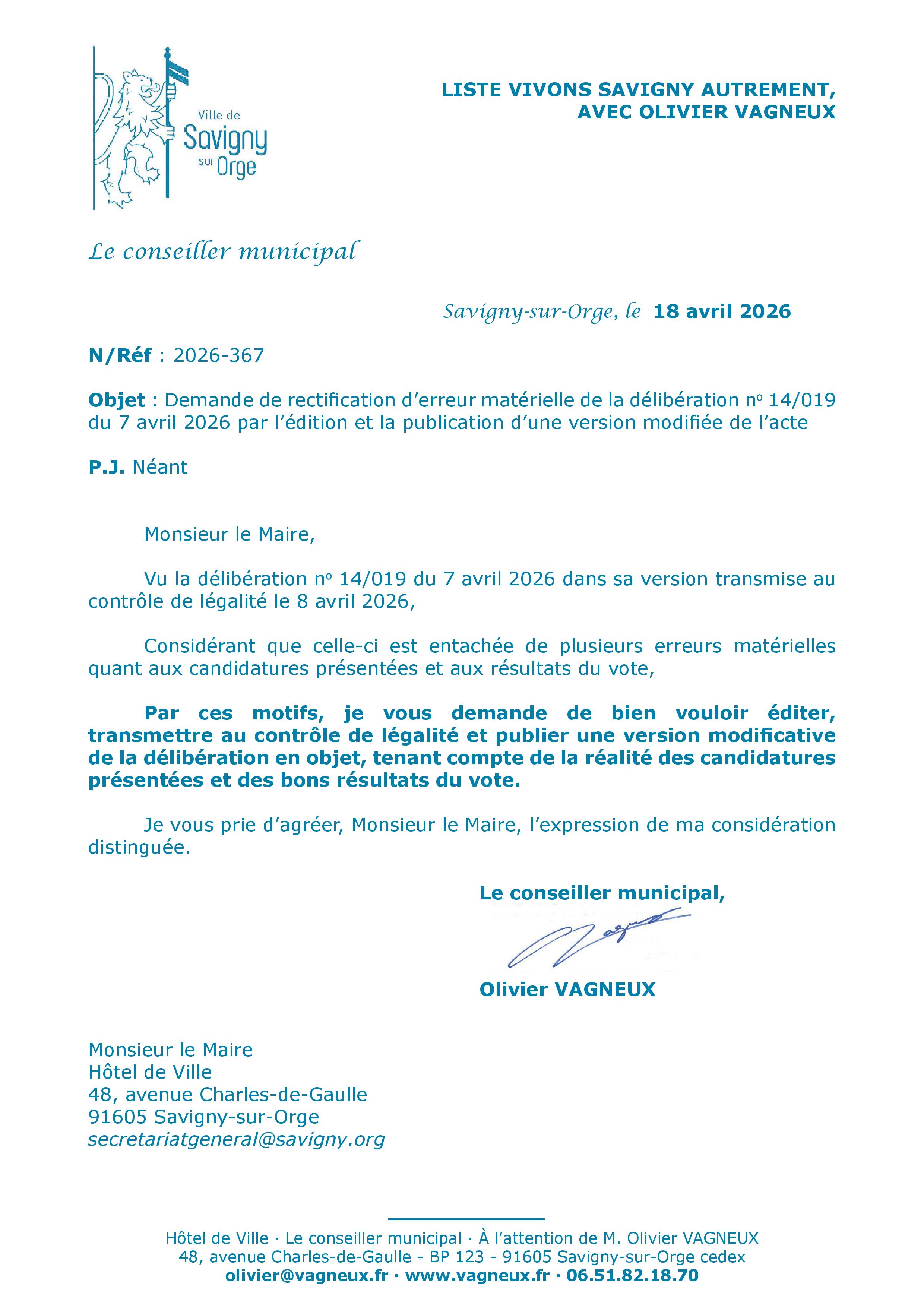C’est par exemple quand Alexis TEILLET, maire de Savigny, invente que le conseil municipal a voté pour élire deux associations à la commission consultative des services publics locaux, alors que le conseil municipal a voté pour trois.