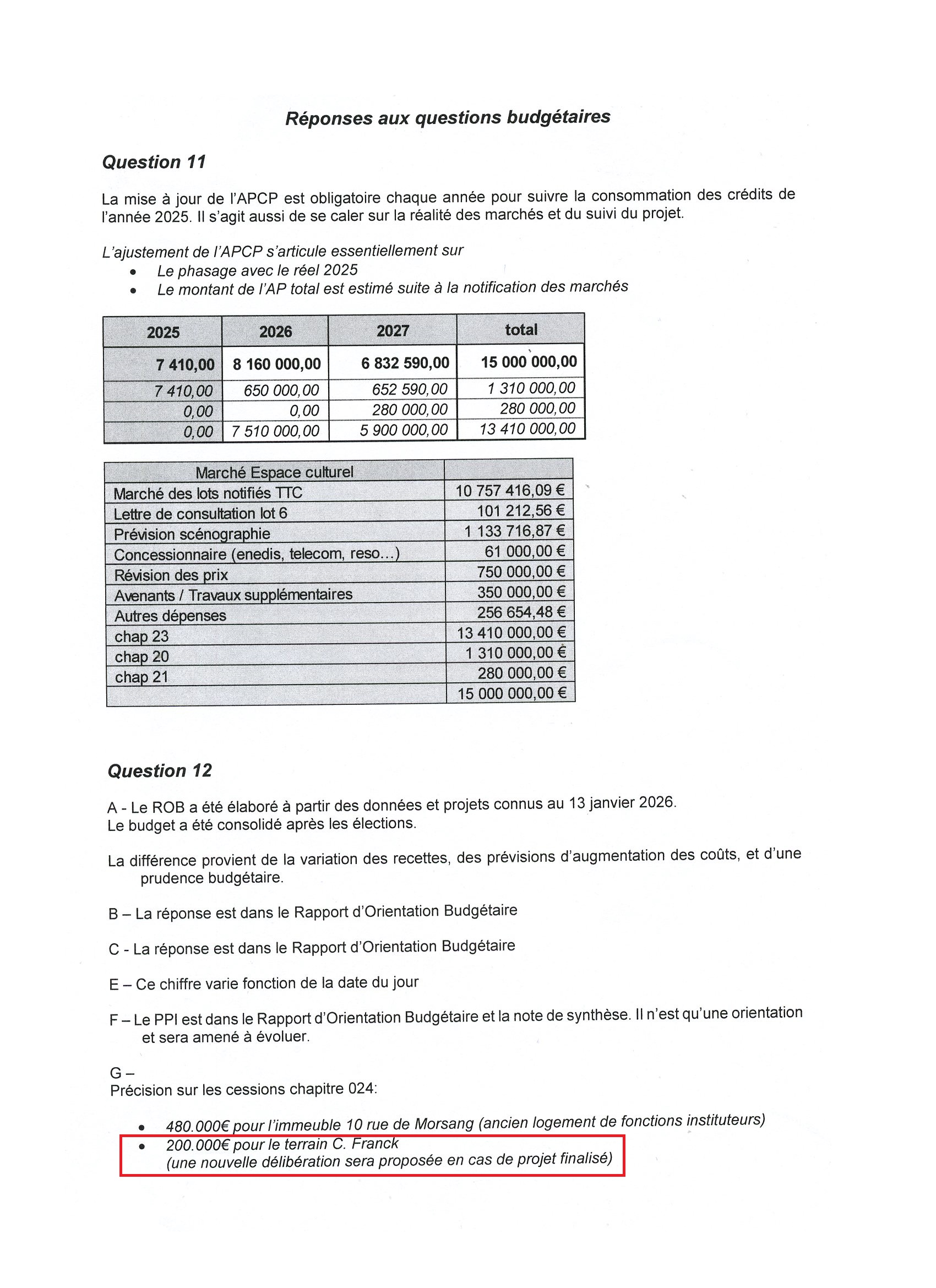 TEILLET est insincère en 2026 quand il inscrit 200 000 euros pour un terrain que les Domaines ont estimé 627 000 euros !!!
