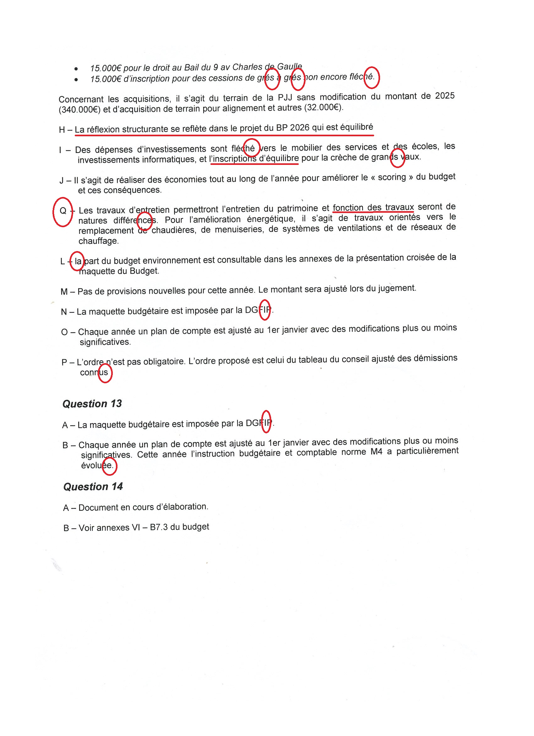 Ou carrément nimp tellement le rédacteur, qui connaît même pas son alphabet, en avait vraiment plus rien à foutre, et devait vraiment vouloir aller faire caca : « H – I – J – Q – L » « des cessions de grés à grés non encore fléché », « des dépenses d’investissements sont fléché », « l’inscriptions d’équilibre pour la crèche de grands vaux », « fonction des travaux seront de nature différences », « La réflexion structurante (je demandais quelle était-elle) se reflète dans le projet du BP 2026 qui est équilibré – bah oui, c’est la Loi…», « démissions connus »…