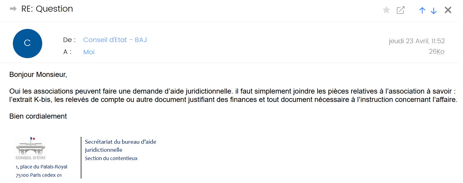 Le Bureau d’aide juridictionnelle du Conseil d’État me le confirme :
