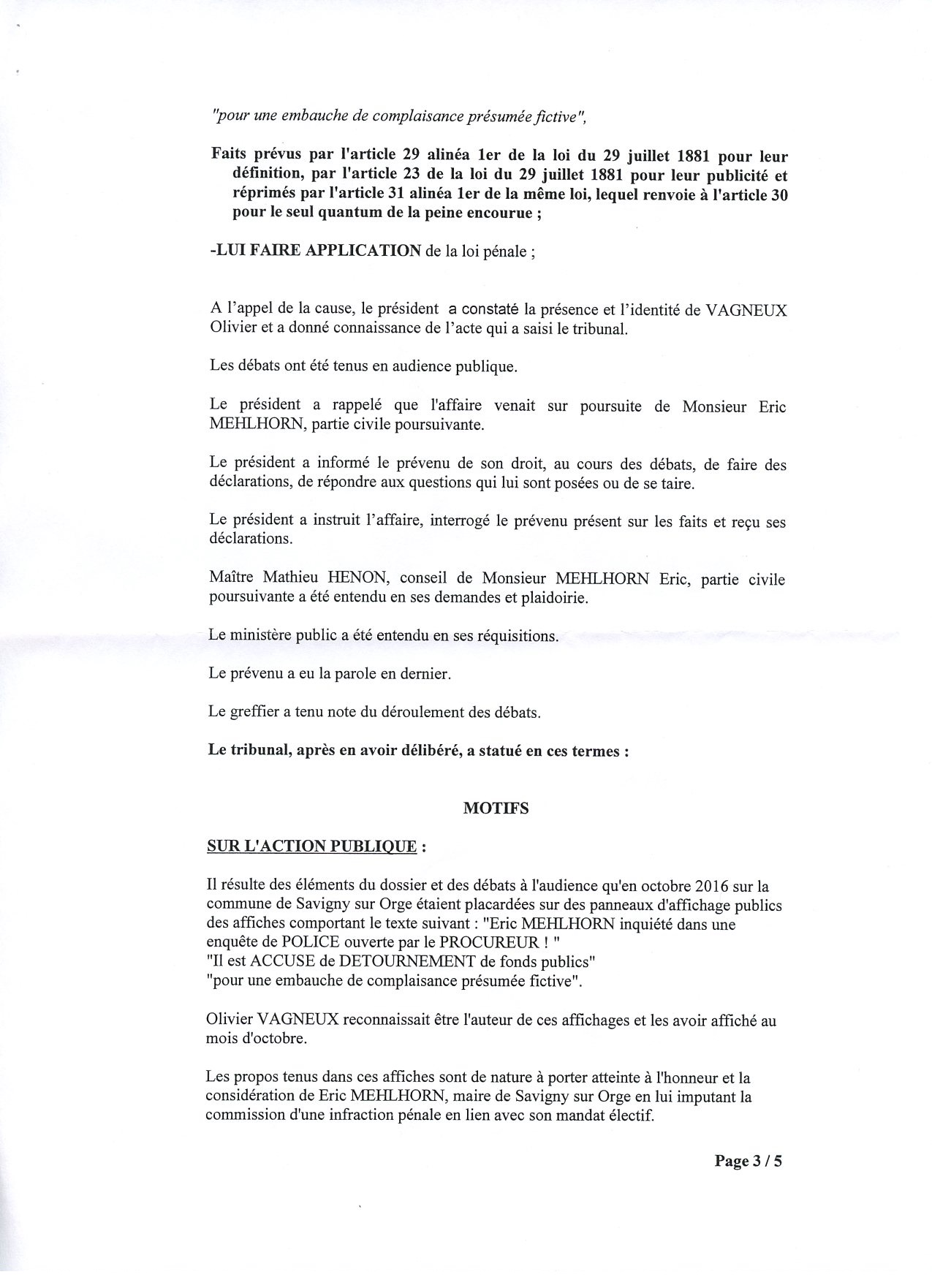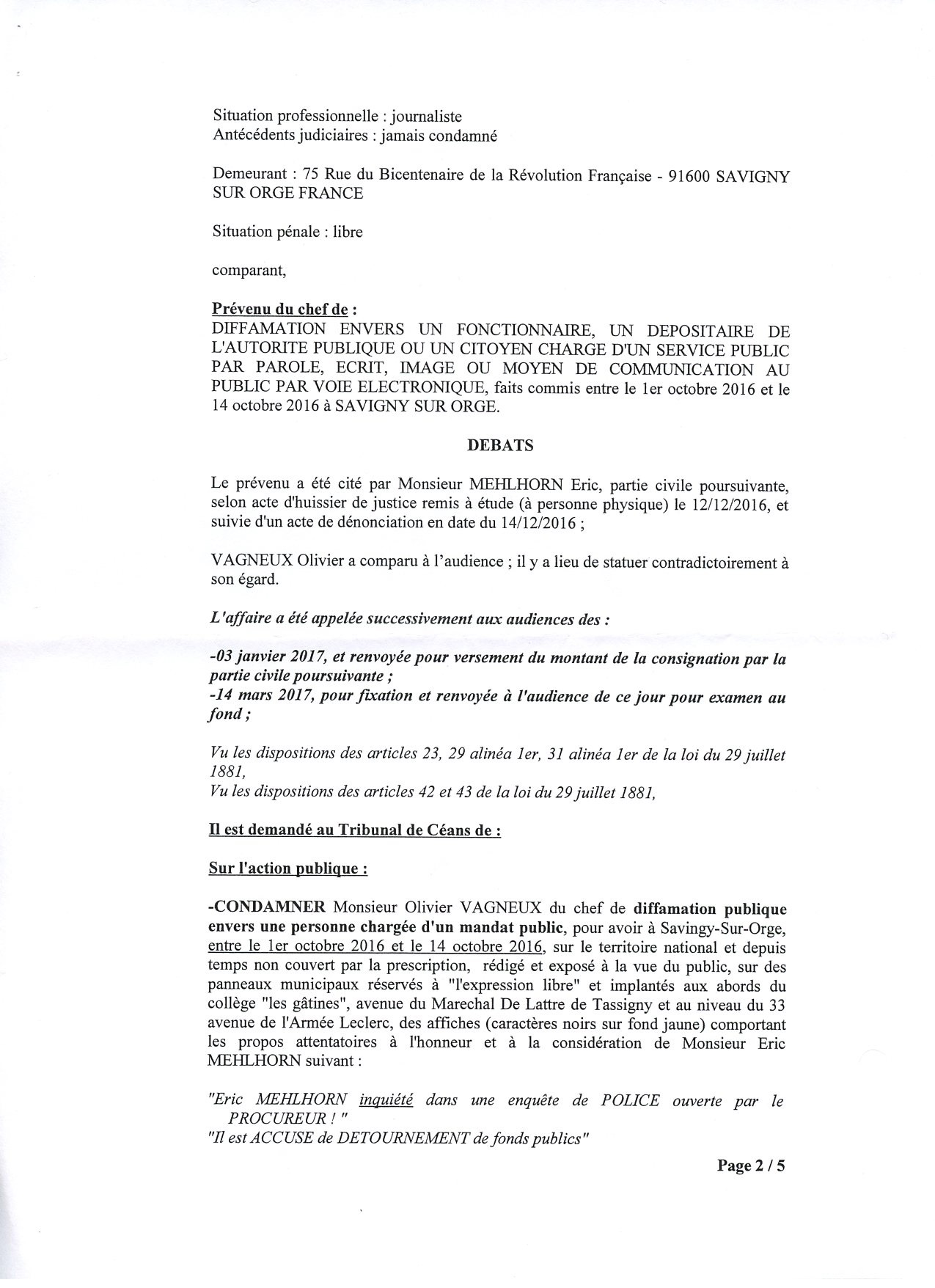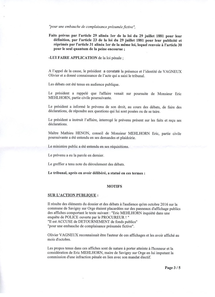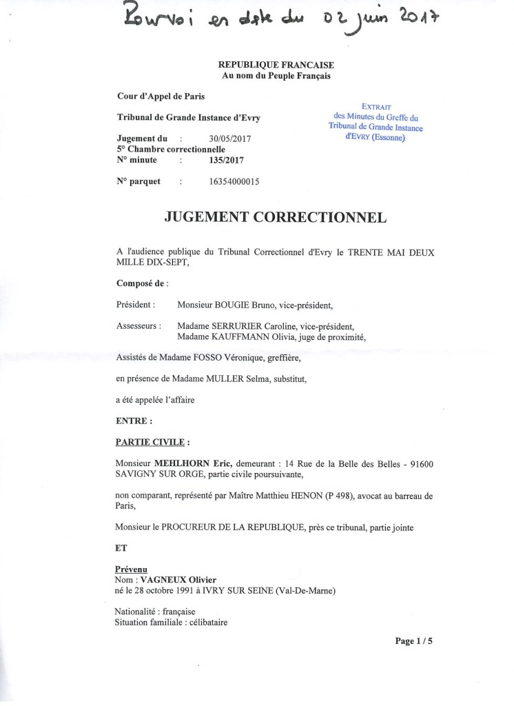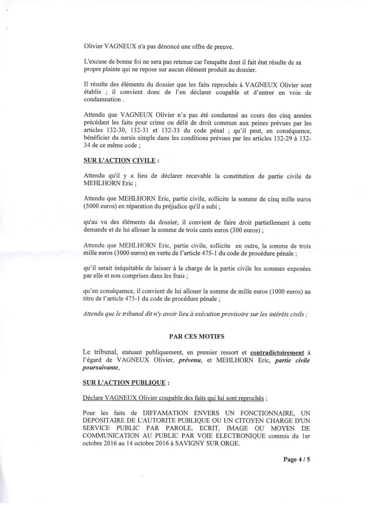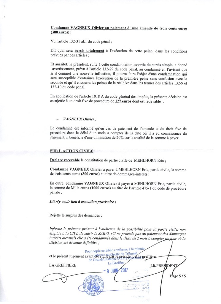 Ma condamnation en diffamation le 30 mai 2017